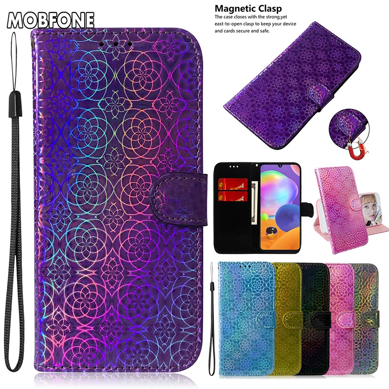 2021 лазерный цветной кожаный чехол-книжка с бумажником для Samsung...