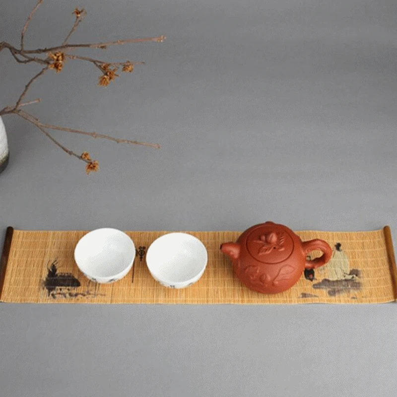 Элегантный поднос для чая, салфетка, водонепроницаемая скатерть, чайный коврик, аксессуары для чайной церемонии, Бамбуковая занавеска ручной работы, подарок