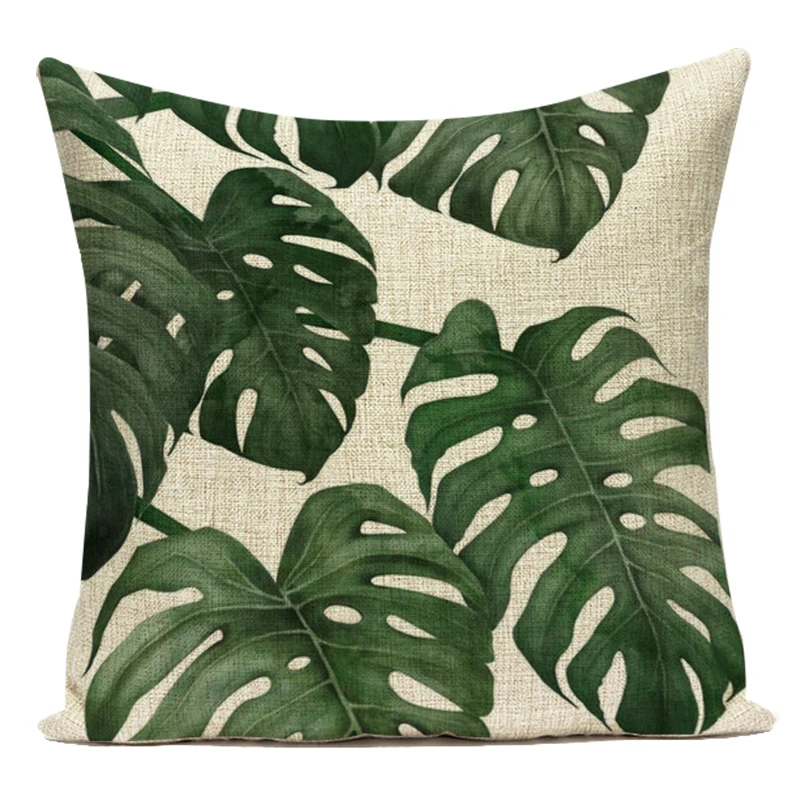 Декоративные подушки из полиэстера, тропические зеленые растения, л...