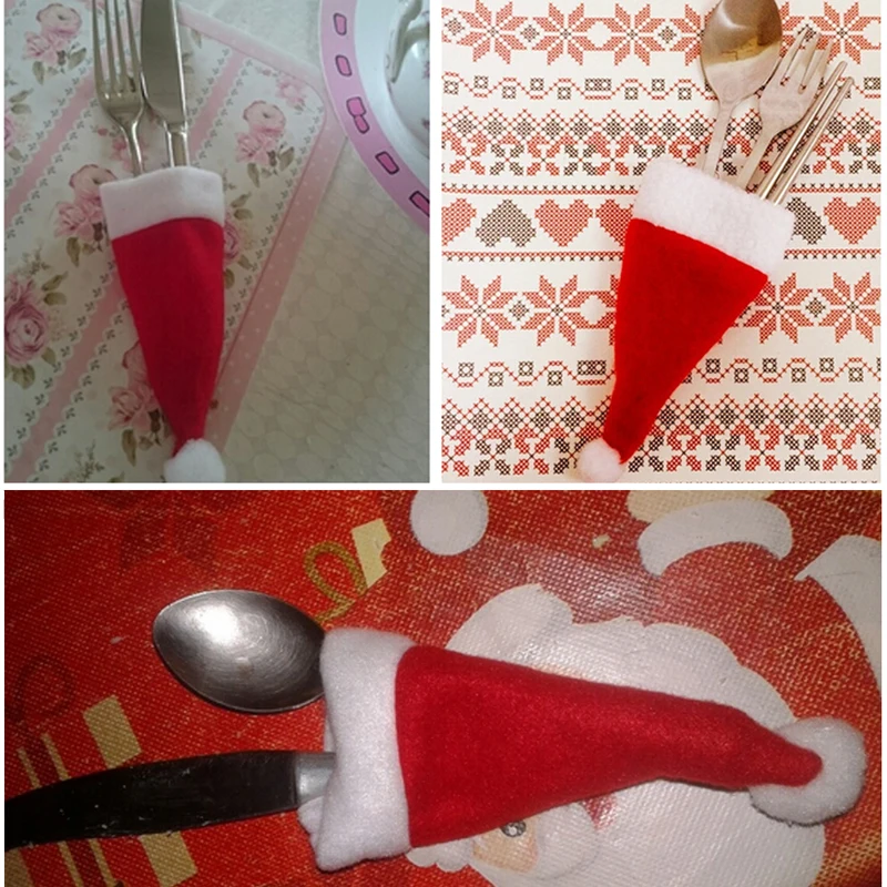 10 шт./упак. Рождественский держатель для столовых приборов в форме колпачков с карманом для вилки ложки сумка с рождественским декором Набор чехлов для столовых приборов рождественские принадлежности