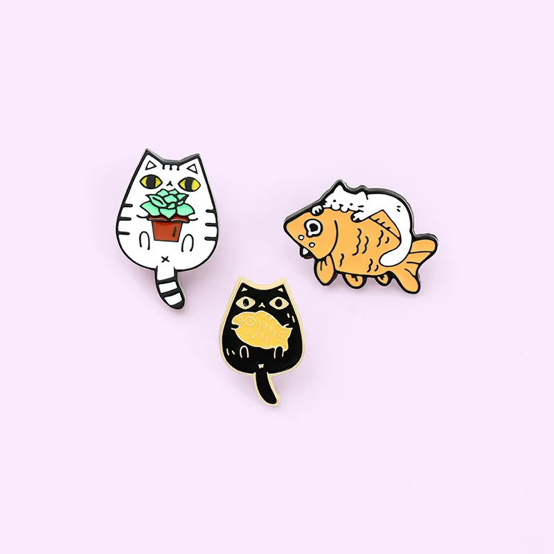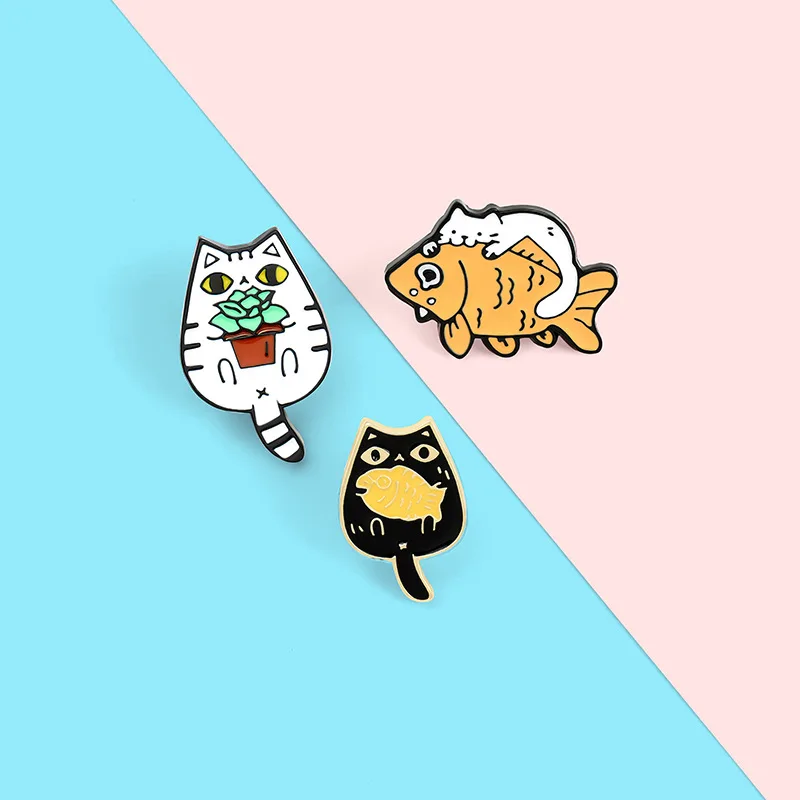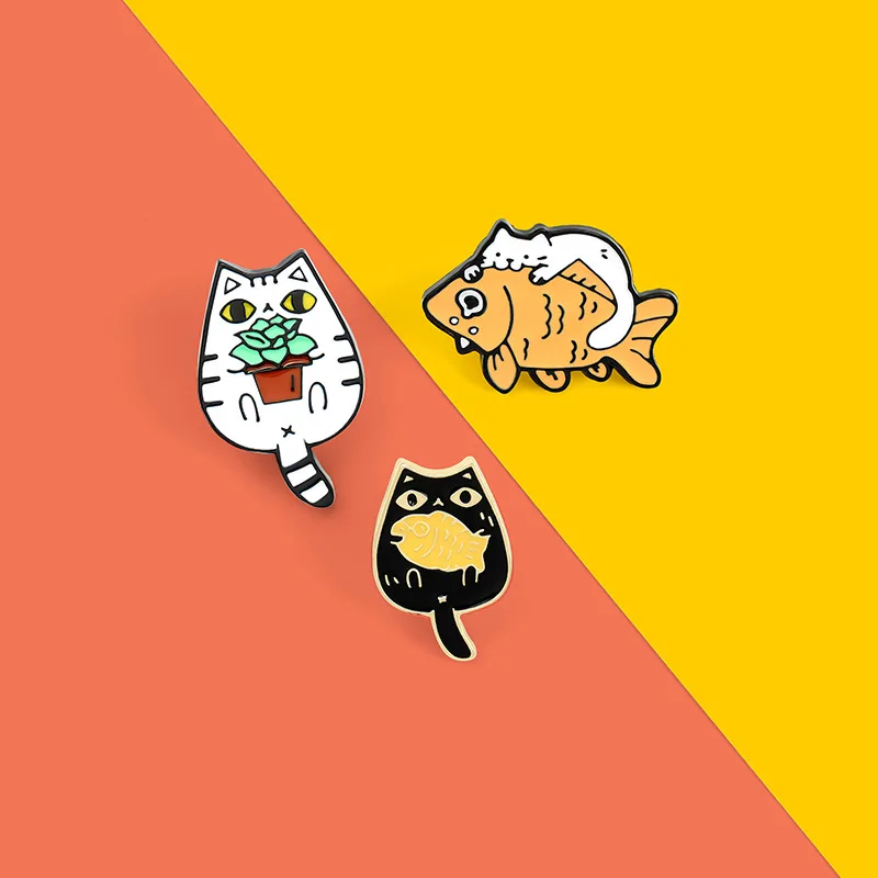 Brooches TypeEnamel Pin Goldfish Cat Brooch for Coat