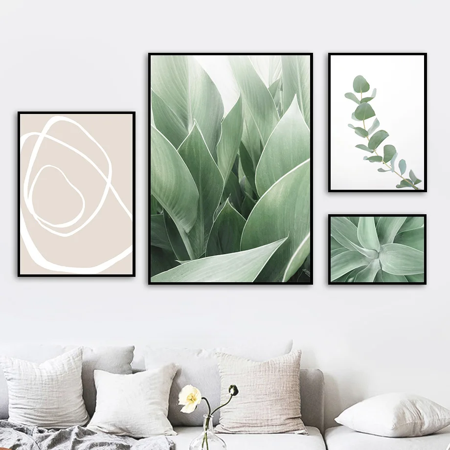 Зеленая Агава лист Одуванчик пампасная трава настенная живопись на ...