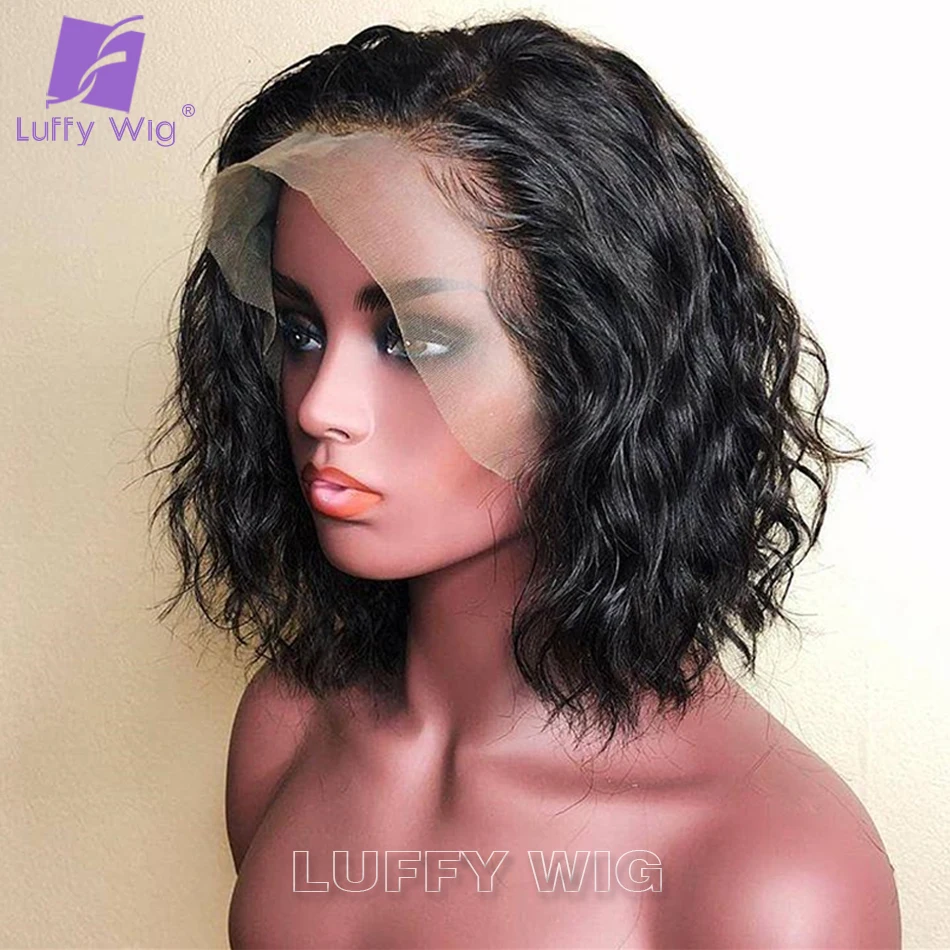 Короткие волнистые волосы 13x 6, парик на сетке спереди, без клея, предварительно выщипанные, Remy, бразильские, Hd, прозрачные человеческие волосы, парики, отбеленные узлы для женщин