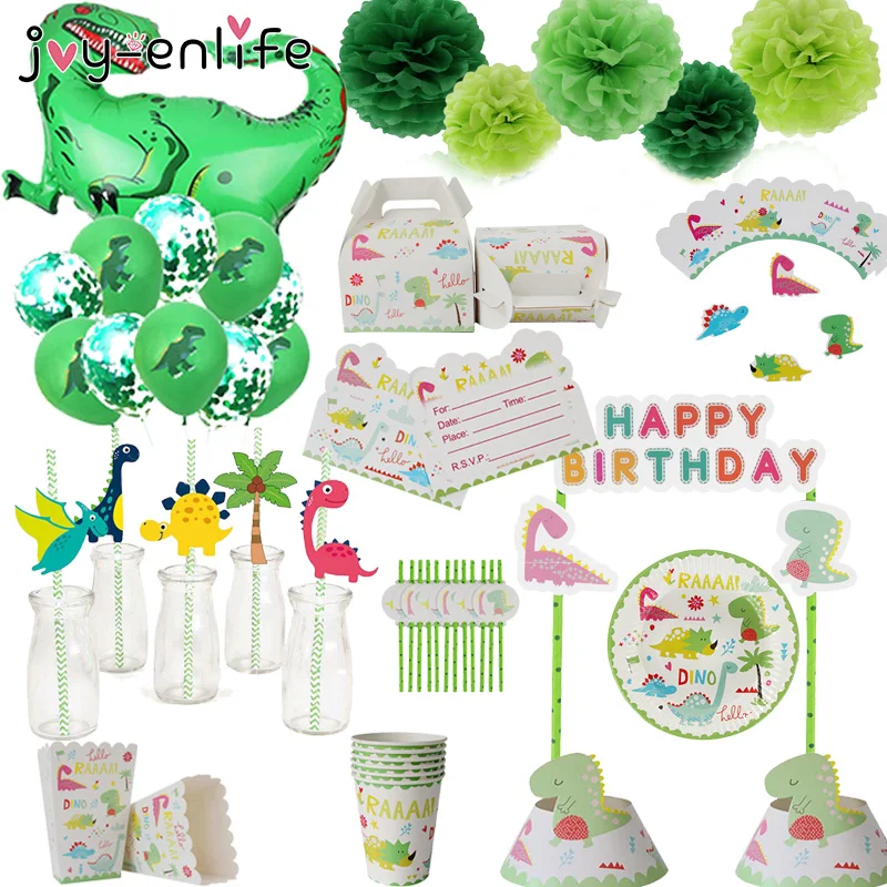Дино вечерние воздушный шарик из фольги в форме динозавра, тянуть флаг по производству бумажных тарелок пить самостоятельно стаканчик с соломинкой для детей подарок на день рождения вечерние Baby Shower украшения детей вечерние