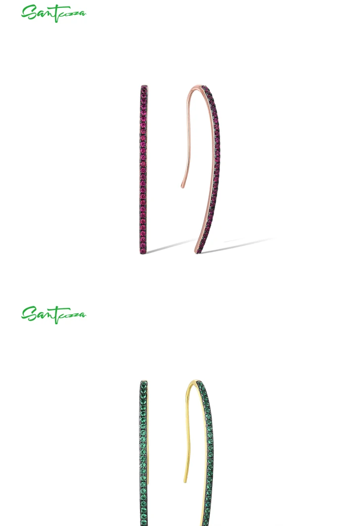 Женские серьги-Крючки SANTUZZA, из серебра 925 пробы, с синим рубином и зеленым кубическим цирконием, модные ювелирные украшения из драгоценных камней