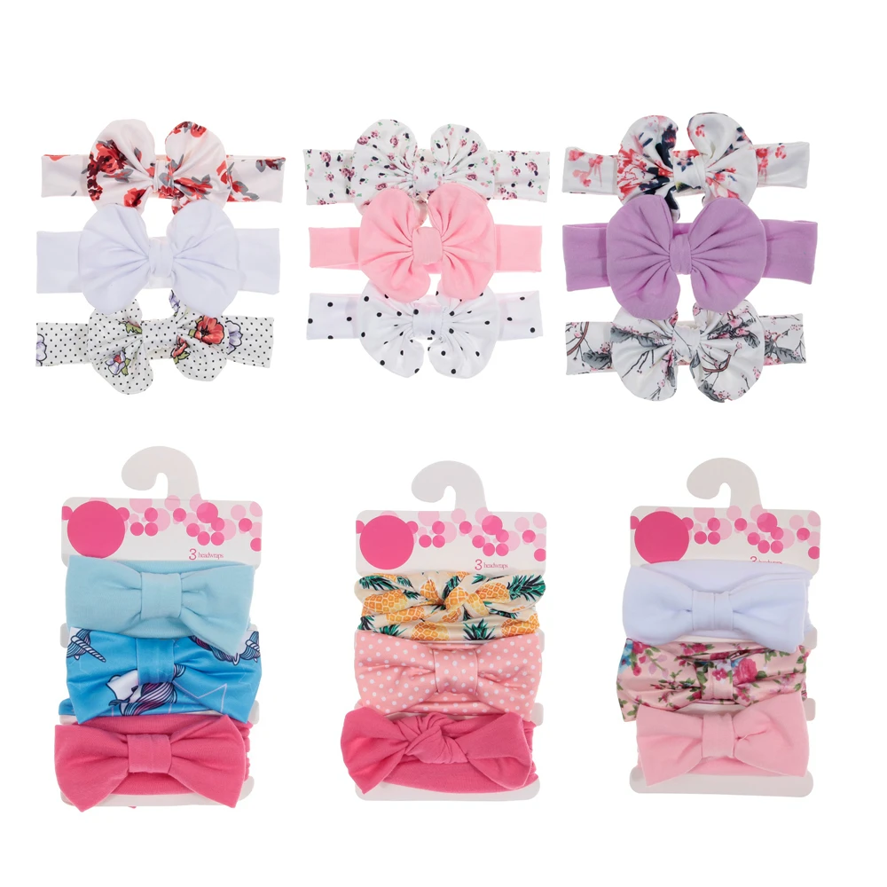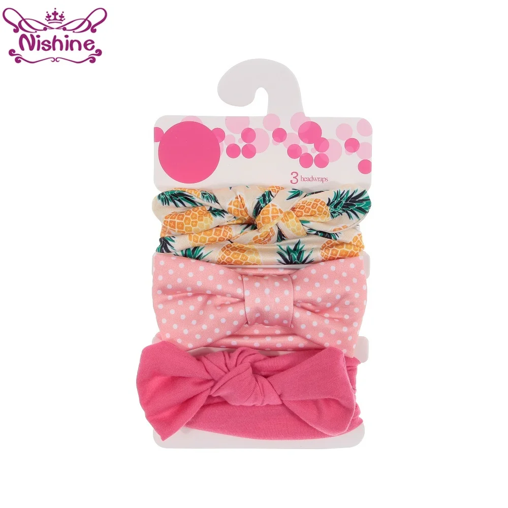 Детская повязка на голову Nishine 3 шт.лот с бантом, аксессуары для волос для девочек, тюрбан с кроличьими ушами, единорог, горошек, цветов, эластичный комплект детских головных уборов
