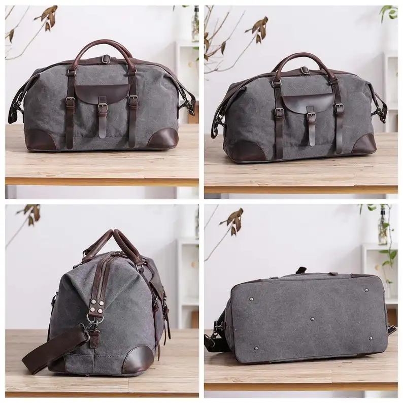 Новое поступление, холщовая кожаная дорожная Складная спортивная сумка, сумка для выходных, мужская сумка, вместительная сумка через плечо