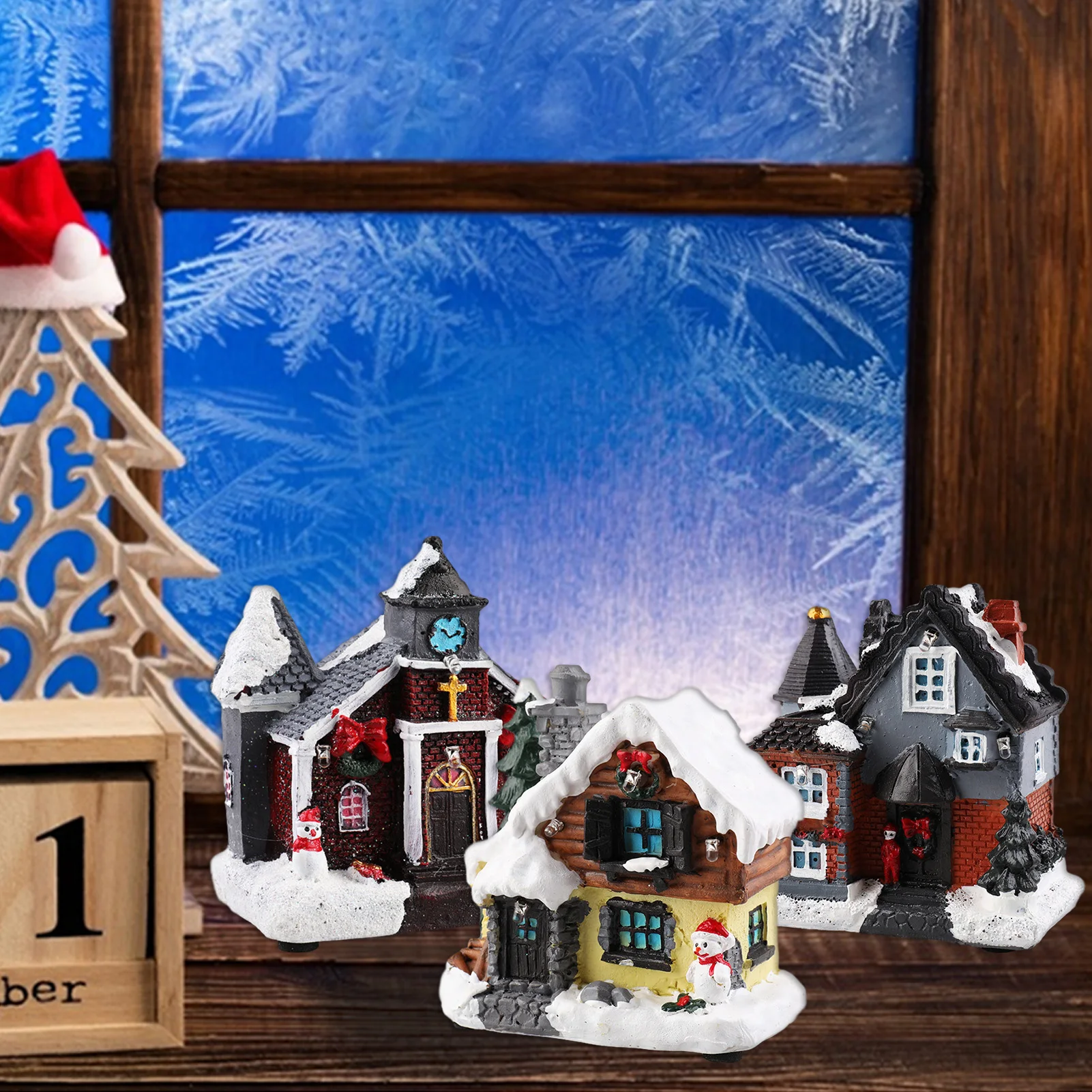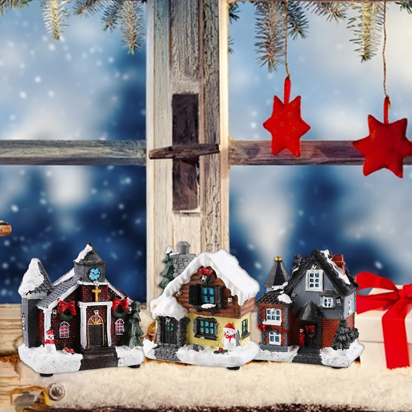 Рождественская фигурка снежного дома, светодиодная подсветка из смолы, Рождественская сцена, деревня, новый год 2021, рождественские украшения для дома