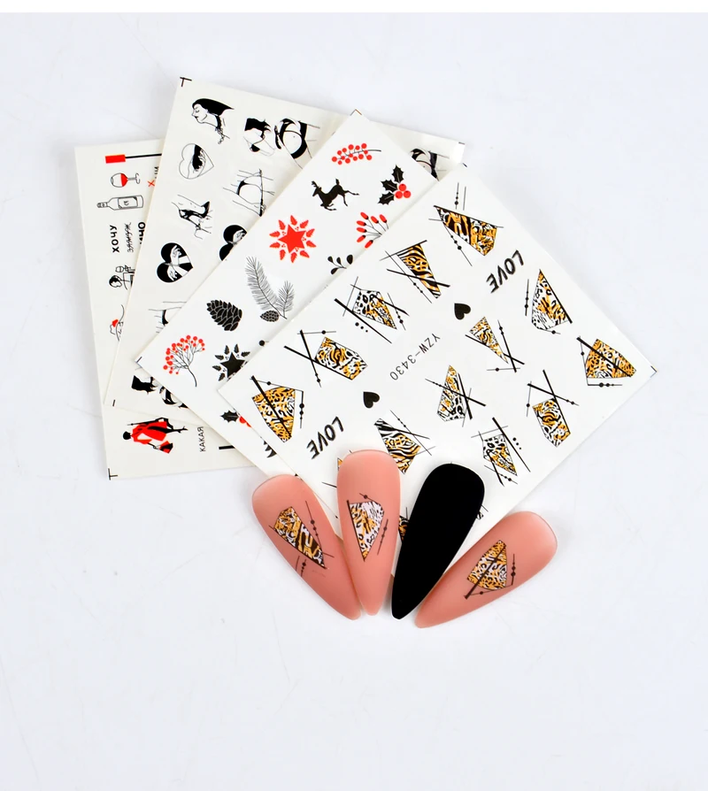 Леопард дизайнерские наклейки для ногтей Снежинка цветочный геометр...