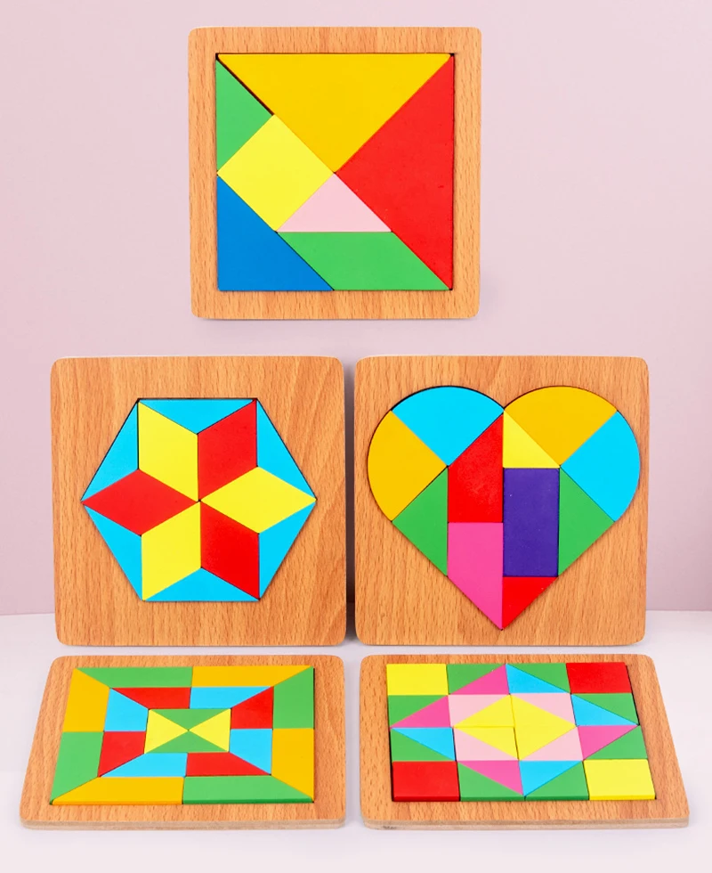 Деревянная доска головоломка Танграм, обучение мышлению детей, Обучающие игрушки по методике Монтессори, пазл, игрушки для детей
