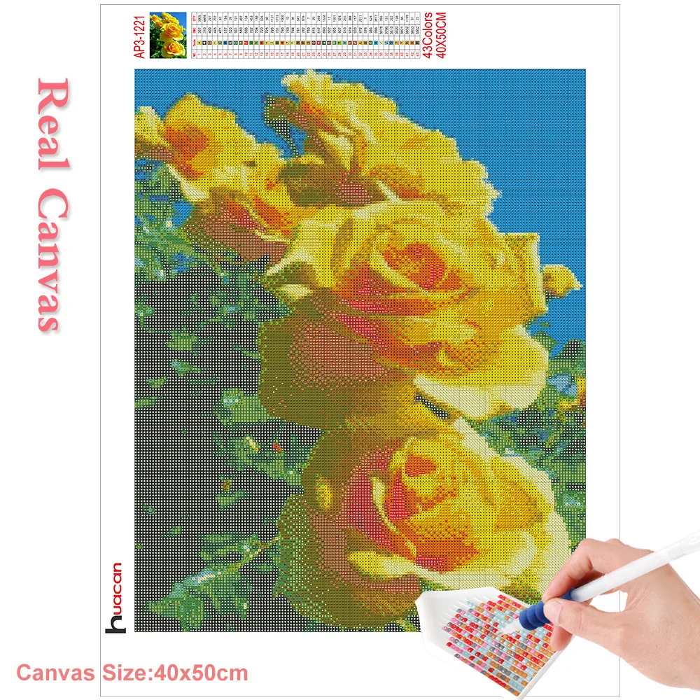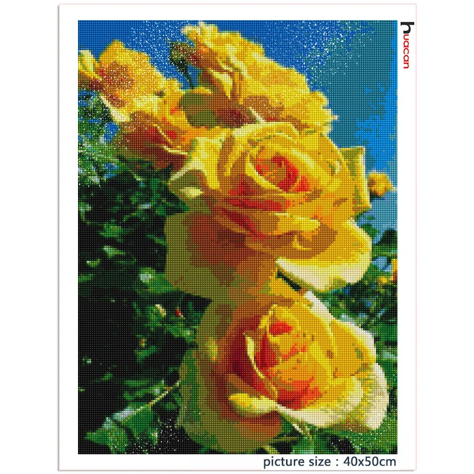 Алмазная живопись Huacan, желтая роза, вышивка крестиком, стразы, картина, Алмазная мозаика цветы, домашнее искусство, подарок ручной работы