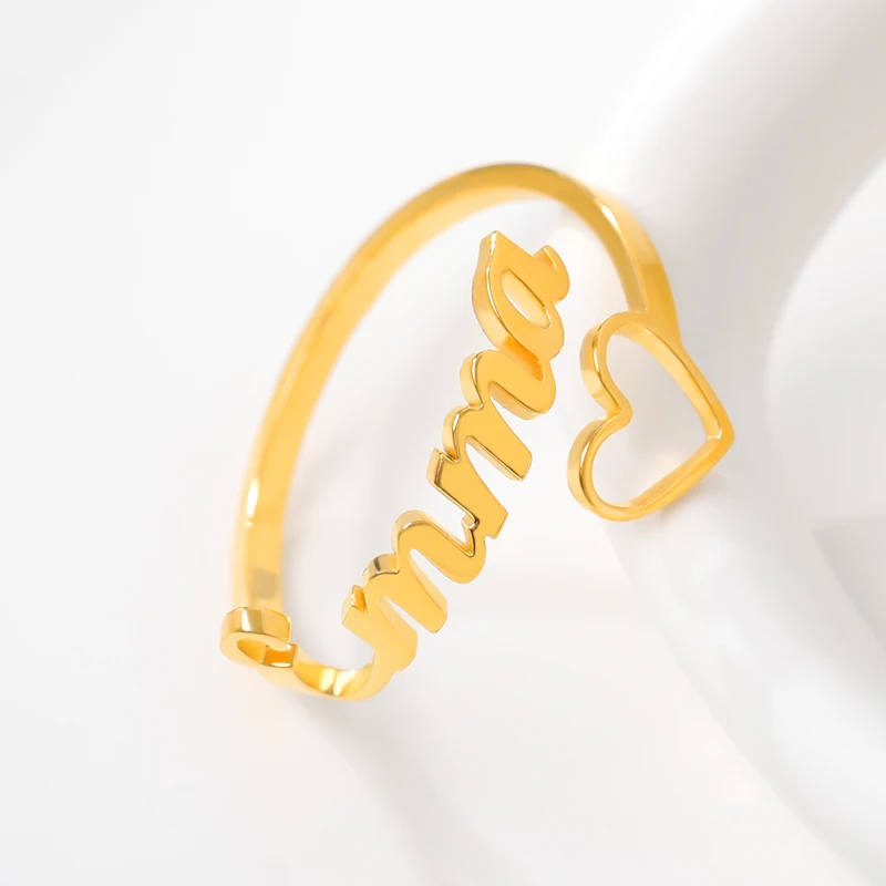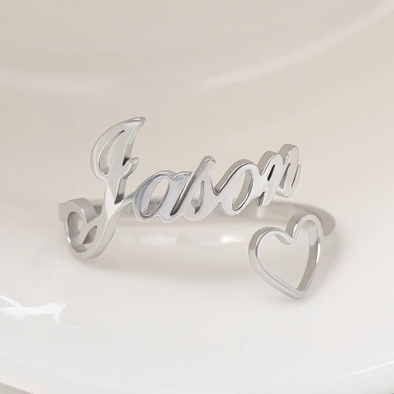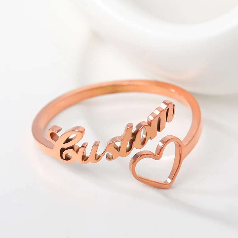 Регулируемые кольца на заказ, персонализированные кольца с буквенным сердечком из нержавеющей стали, обручальное кольцо для женщин, юбилейные ювелирные изделия