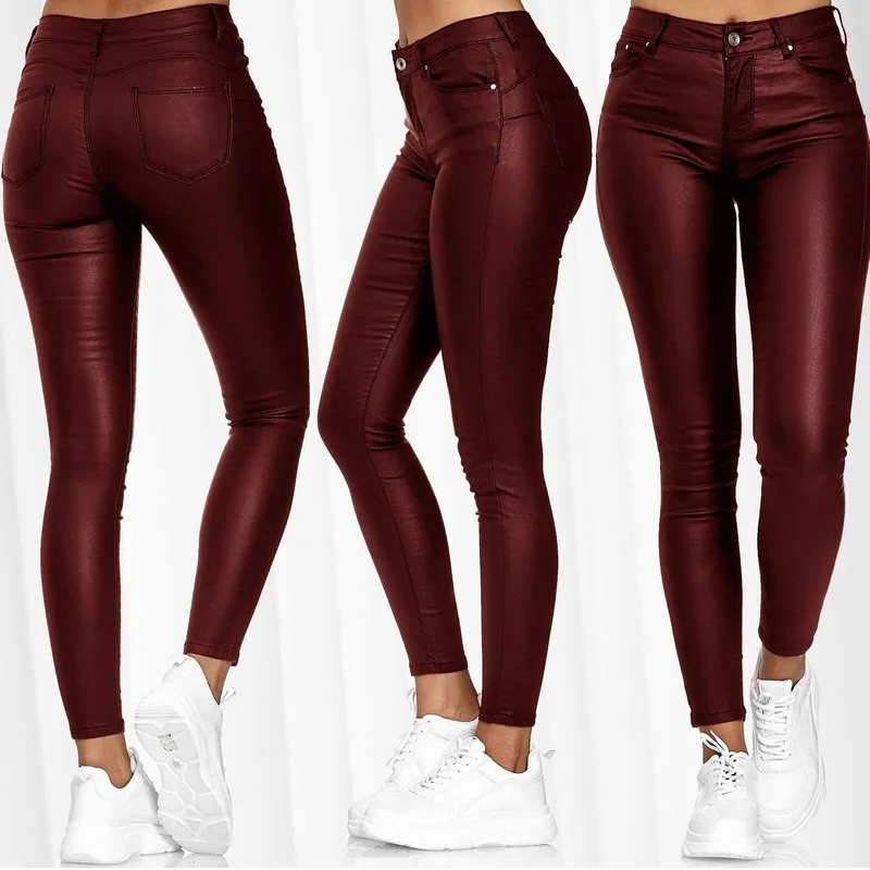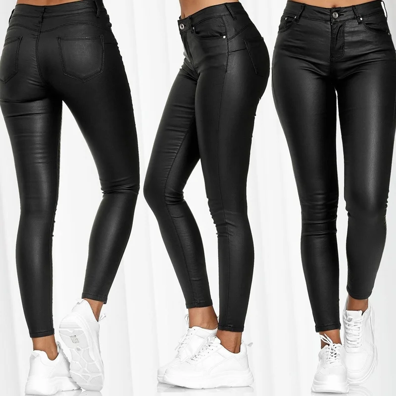 2020 элегантные брюки из искусственной кожи с высокой талией, женские узкие брюки-карандаш, офисные женские брюки, повседневные облегающие черные Капри