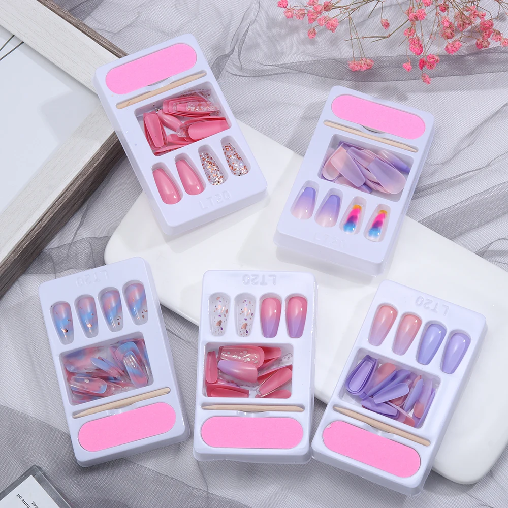 24 шт.компл. длинные гвозди, накладные ногти, европейская Радуга, балерина, полные накладные ногти, искусственные съемные накладные ногти с клеем для ногтей
