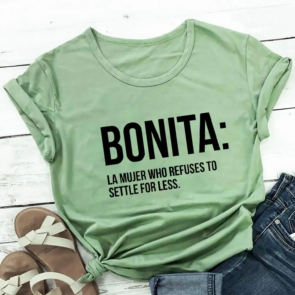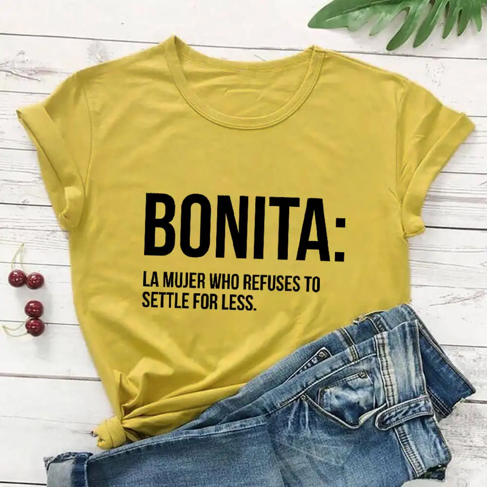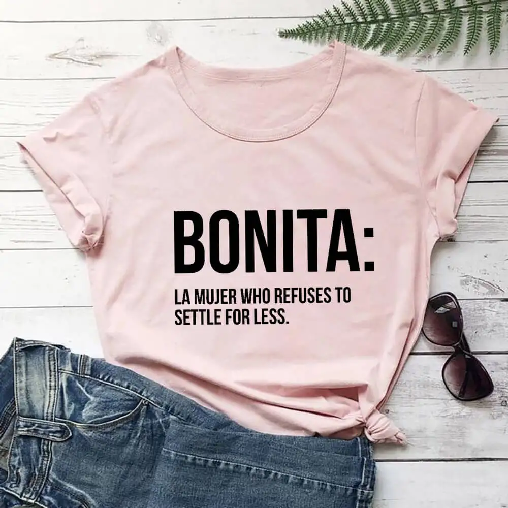 Футболка Bonit женская с круглым вырезом, 100% хлопок, смешная футболка в мексиканском стиле, повседневный топ с коротким рукавом в испанском стиле, подарки для латин, на лето