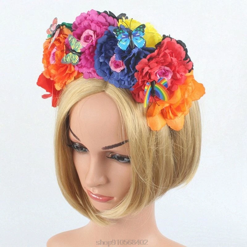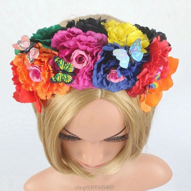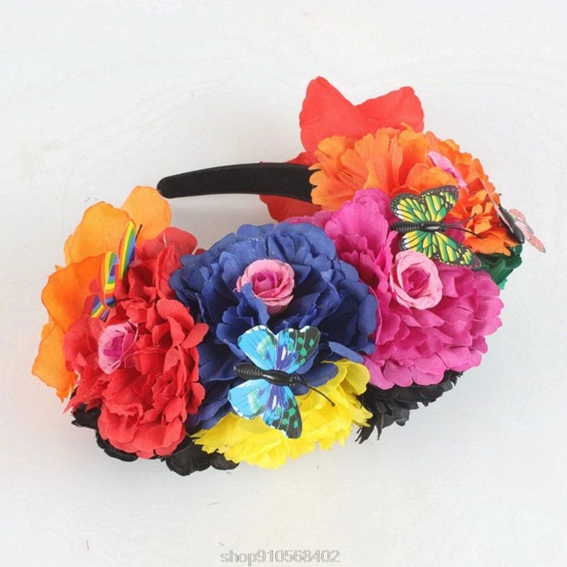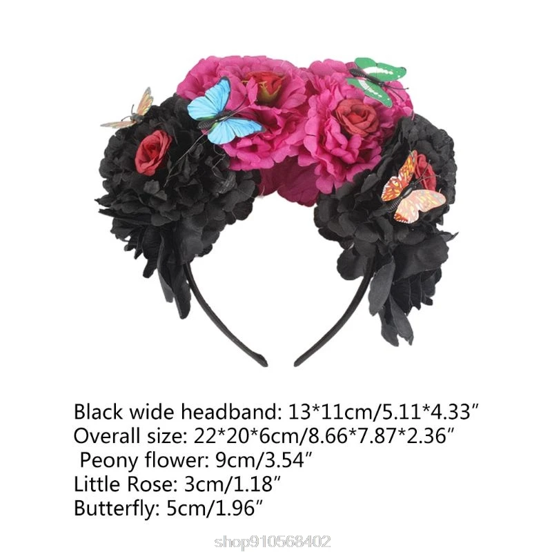 Красочная повязка на голову с цветами пиона, Сказочная бабочка, мексиканская корона, Косплей День мертвых, головной убор D02 12, Прямая поставка