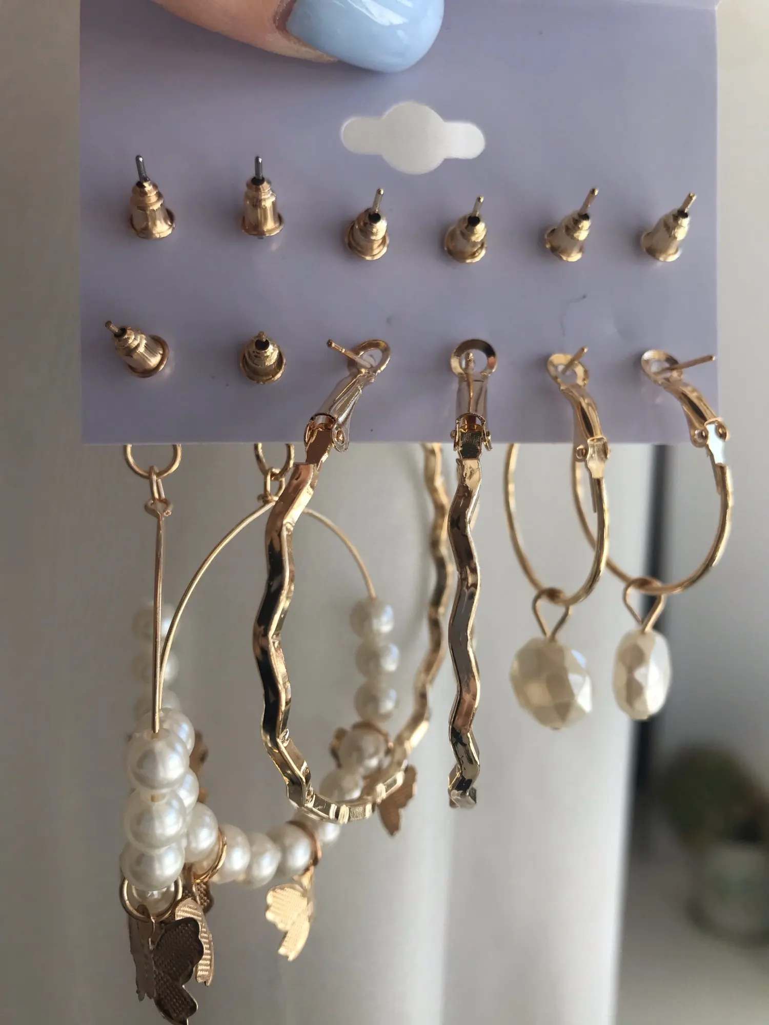 Классный набор. Супер мена быстрая доставка. Сделоно все аккуратно. Уши от металла не болят. Брала с купоном за 77₽. Рекомендую. Буду носить все серьги, хотя изначально планировала только колечки. Но даже гвоздики оказались очень хорошими. Смотрится дорого.