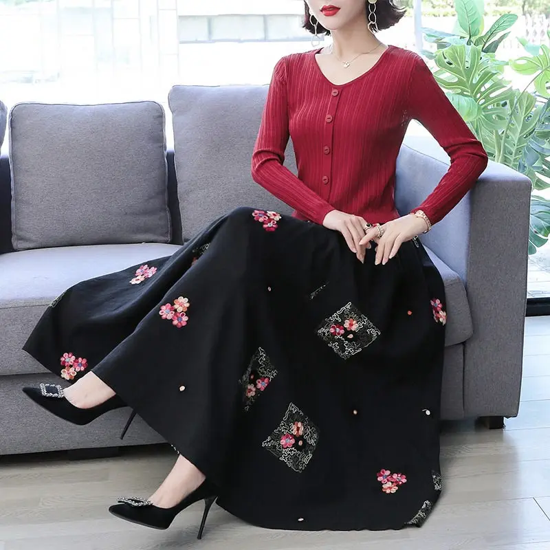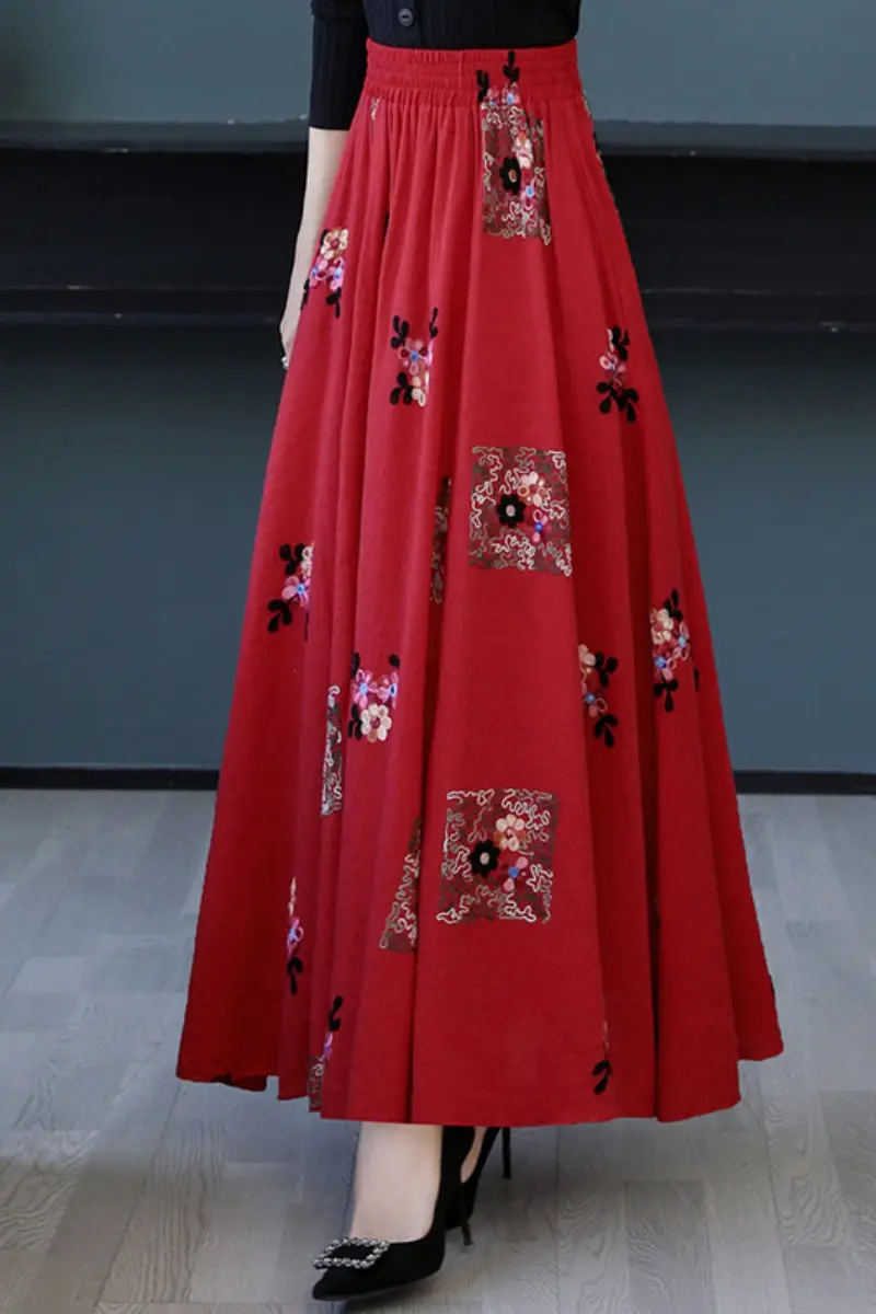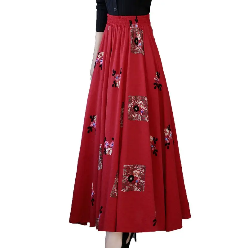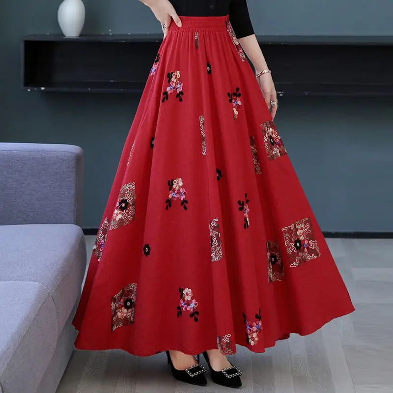 Юбка женская с цветочным принтом, длинная юбка из хлопка и льна в этническом ретро стиле с вышивкой, большие размеры, y1051, весна-осень