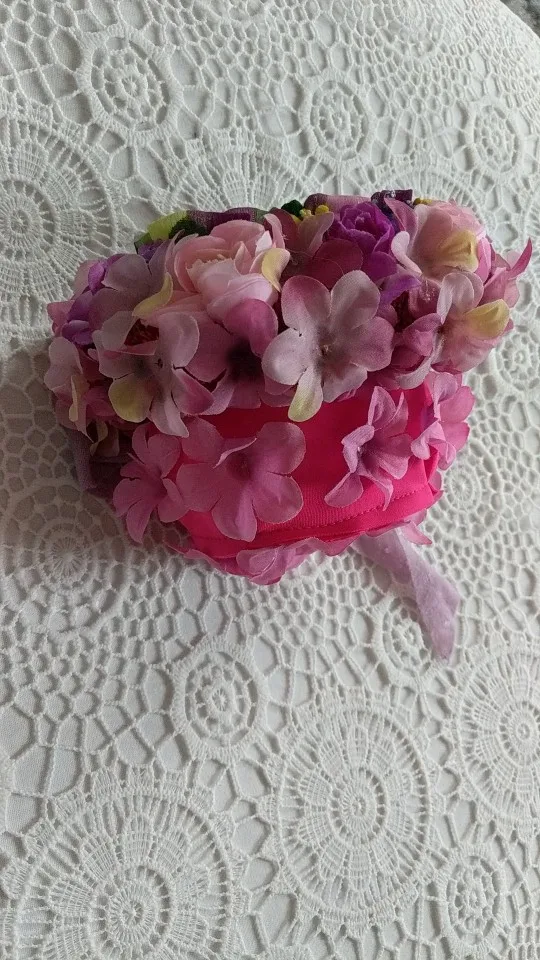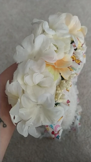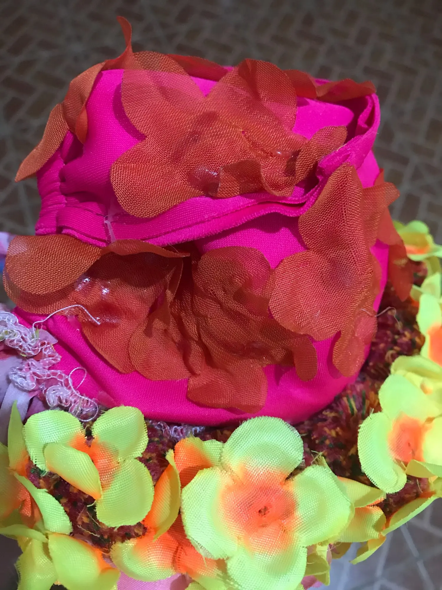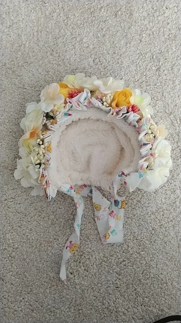 Не выглядит точно так, как на картинке... Довольно маленький и компактный по сравнению с другими. И меньше "диких цветов" выглядят-все аккуратно и круглые. Также есть забавные однослойные цветы, наклеенные на заднюю часть шляпы, которые выглядят очень липкими... но вы просто убедитесь, что вы не можете увидеть их на фотографиях-это не Массовая проблема.