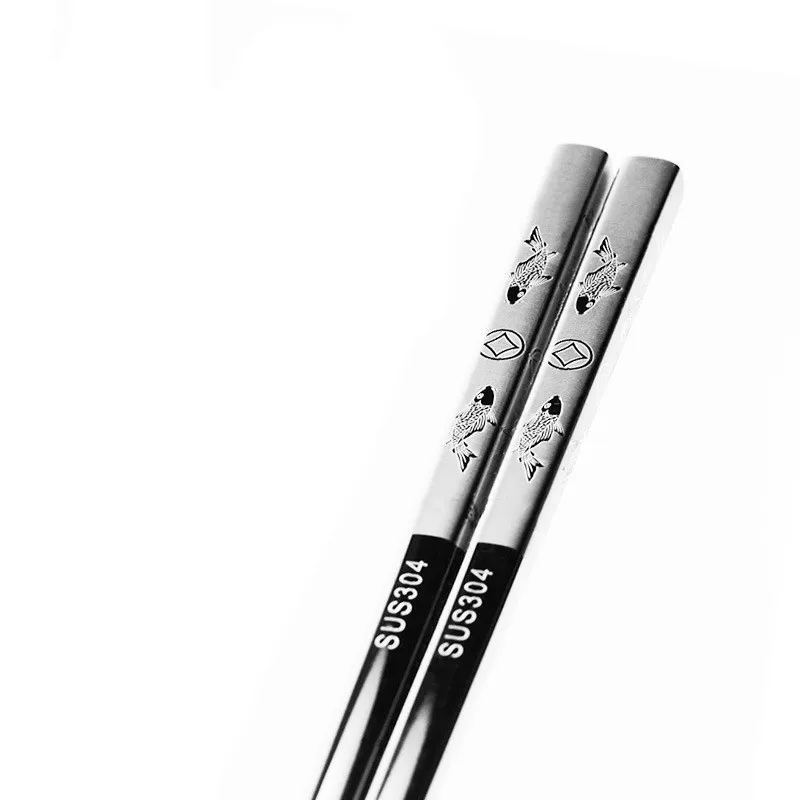 Металлические палочки для еды, серебристые Нескользящие пищевые палочки из нержавеющей стали, посуда для суши, пельмени, полые квадратные Цветочные Палочки, палочки для еды