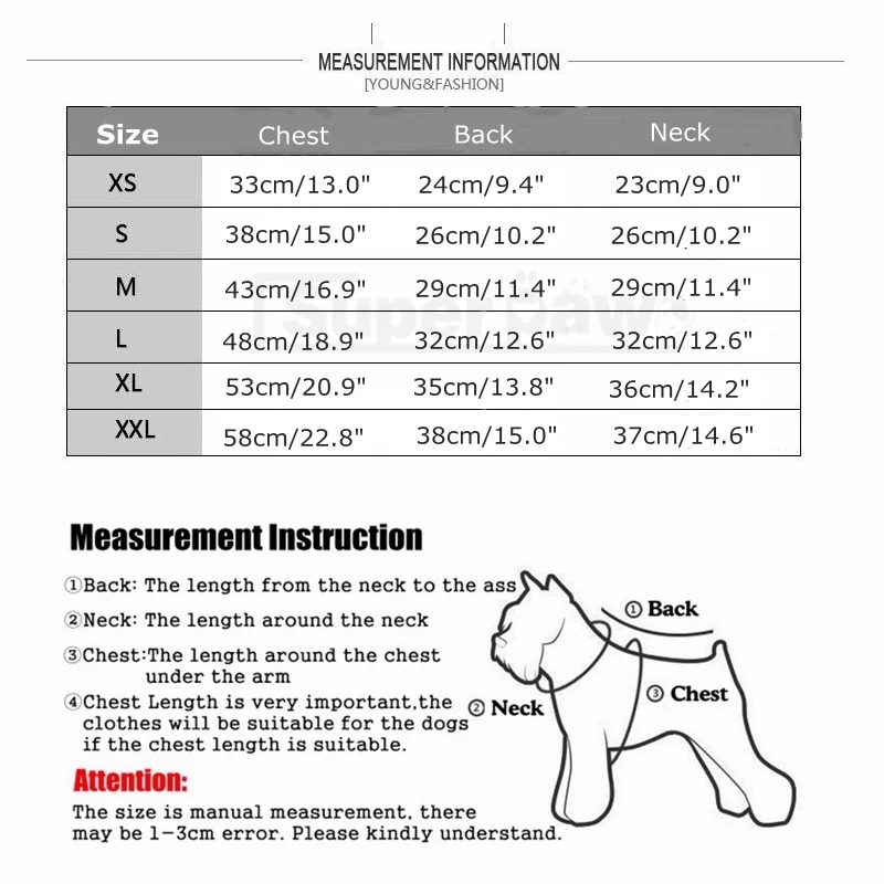2. Для двух ног, пожалуйста, обратите внимание на обхват груди, и для четырех ног, должны соответствовать обхвату груди и длине спины.