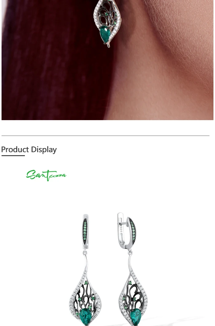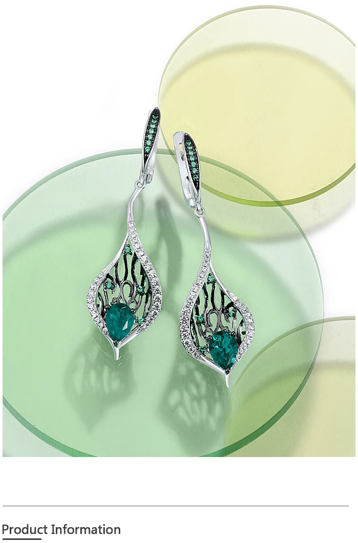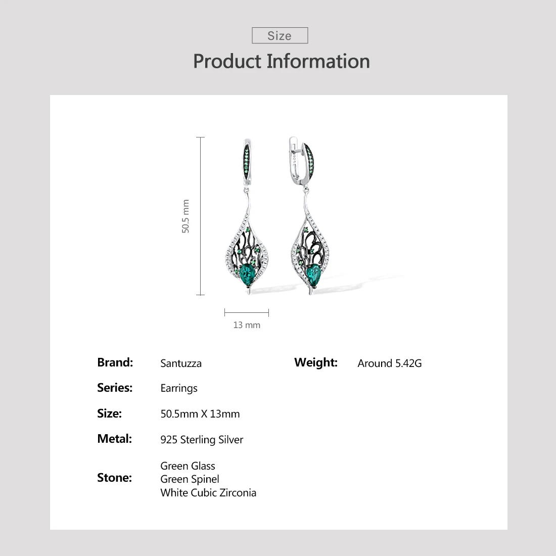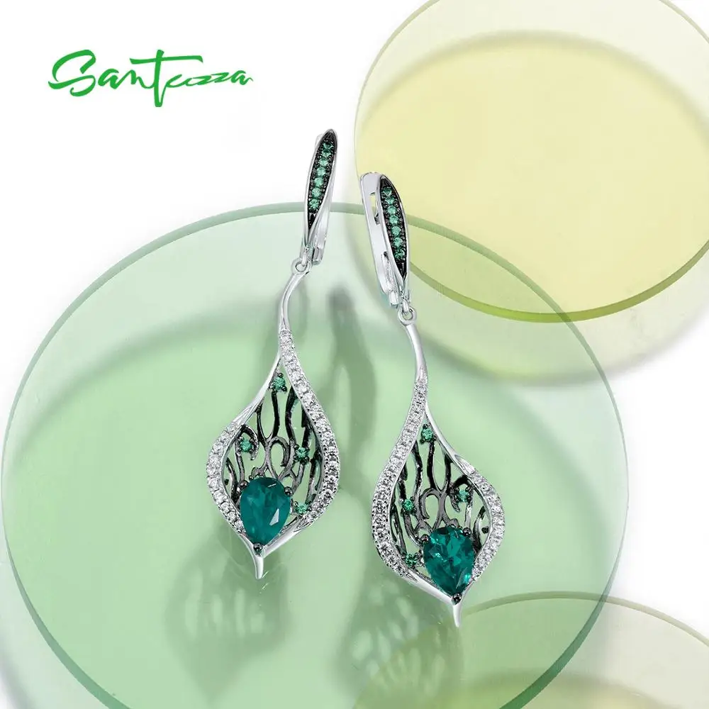 Женские серебряные серьги-подвески SANTUZZA, из серебра 925 пробы с белыми листьями фианита И Зелеными камнями, модные ювелирные украшения из драгоценных камней
