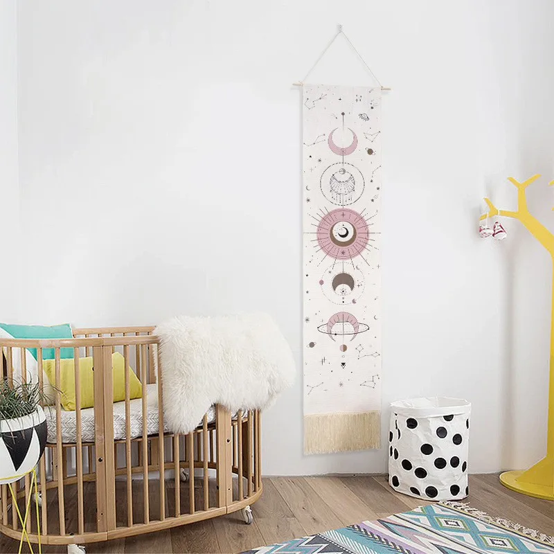 Гобелен с Луной Moon Phase, настенный художественный богемный гобелен, хлопковый льняной гобелен для декора комнаты 15,74X64,76 дюймов