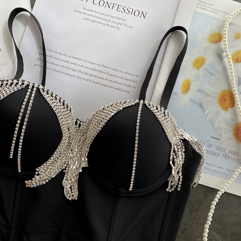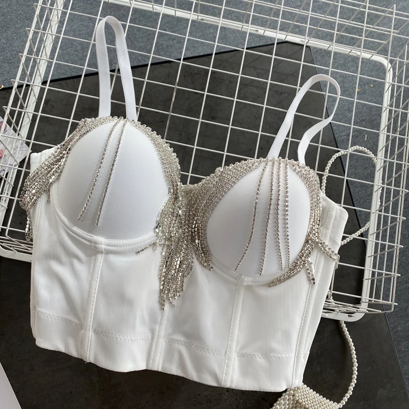 Новые Модные ботильоны с кисточками Стразы камзол сексуальный мягкий для танцев в ночном клубе без рукавов высокое приталенное бюстье кроп-топы