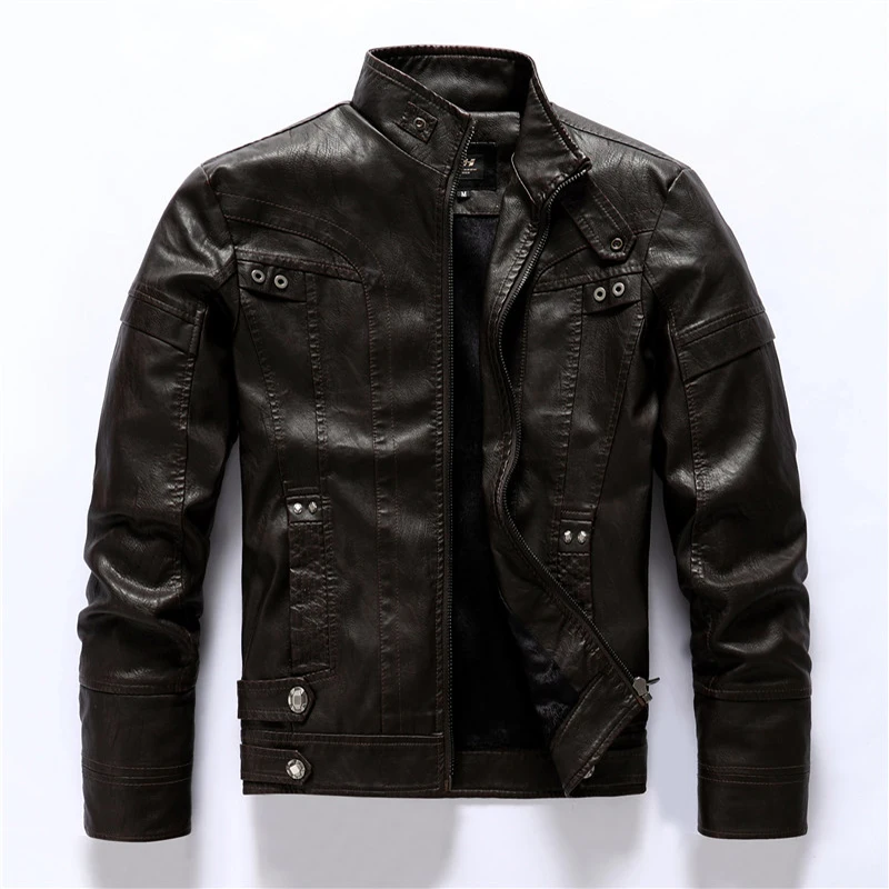 Мужская кожаная куртка, деловая Повседневная трендовая кожаная одежда, осенне-зимняя куртка, новая модная Байкерская кожаная куртка с мотором