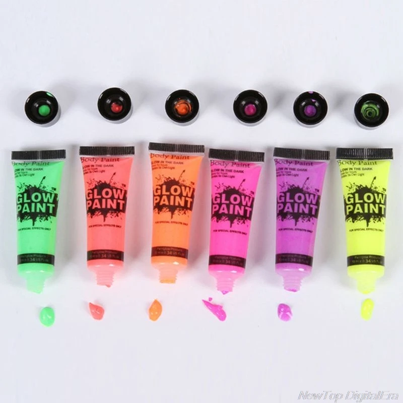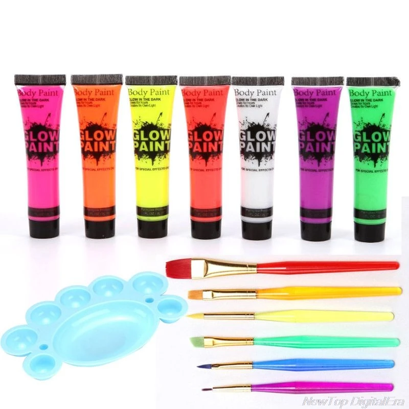 7 трубок 25 мл УФ светящийся черный свет светящаяся краска для лица и тела неоновый флуоресцентный пигмент светящийся в темноте макияж краска набор D02 20