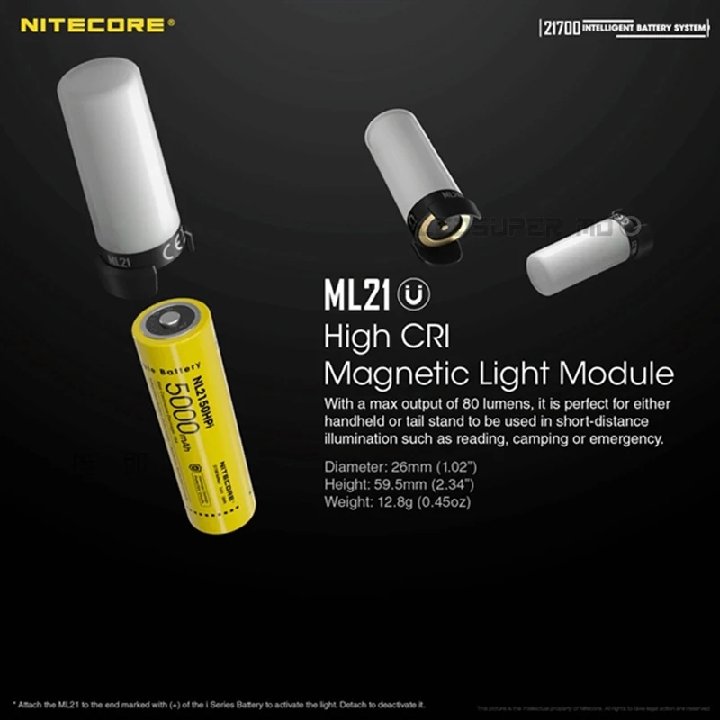 Защелкните ML21 на верхней части аккумулятора и превратите его в мини-фонарь для вспышки, который обеспечивает 80 люмен света, отлично подходит для активного отдыха, такого как кемпинг, чтение, или сигнализация до 19 часов. Этот небольшой светильник вой модуль, напоминающий фонарь NITECORE LA10, весит всего 0,39 унций и обеспечивает более 90 мягсветильник свет CRI, очень похожий на естесветильник. Обеспечивает четкие визуальные эффекты, уменьшая нагрузку на глаза. Задняя подставка позволяет вашему аккумулятору удвоить, как светильник, идеально подходит для любых повседневных задач.