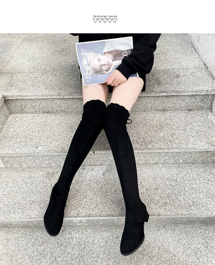 Женские эластичные сапоги выше колена, черные облегающие сапоги из ...