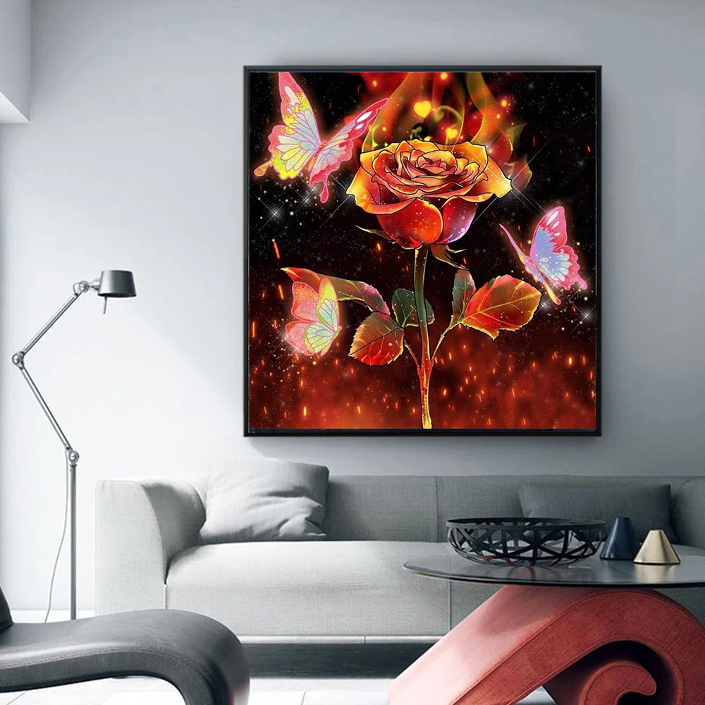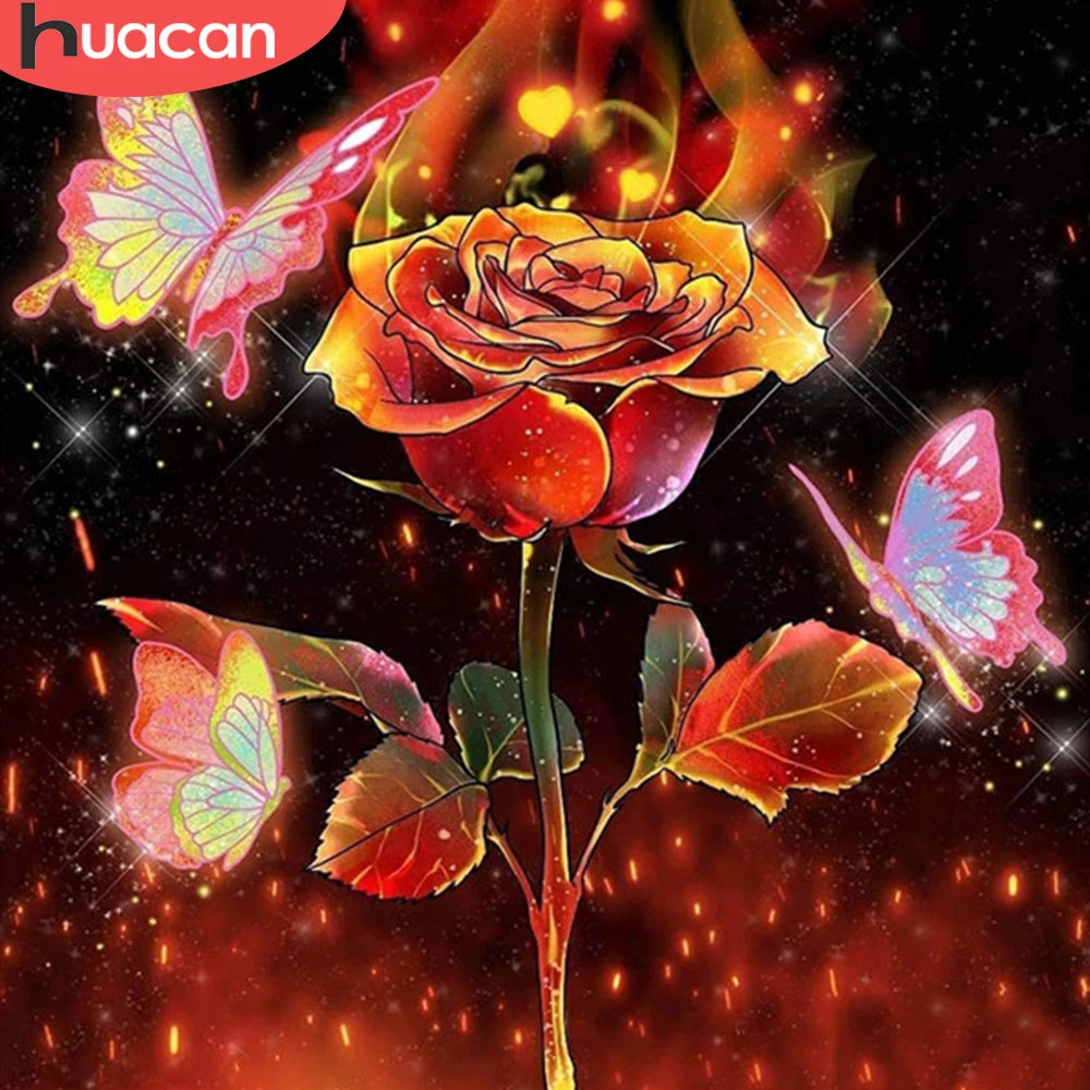 Алмазная 5d картина HUACAN, мозаика с цветами, бабочками, для творчества, вышивка крестиком, роза, домашний декор