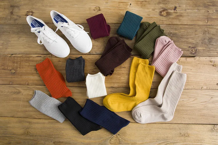 Носки женские трикотажные в Корейском стиле, модные короткие однотонные, стиль Харадзюку, винтажная уличная одежда в японском стиле, милые хлопковые длинные носки