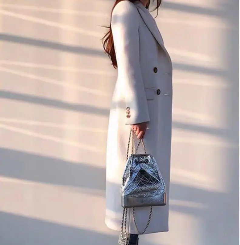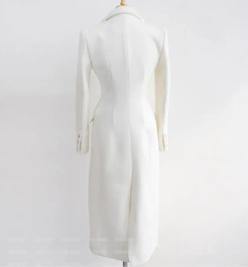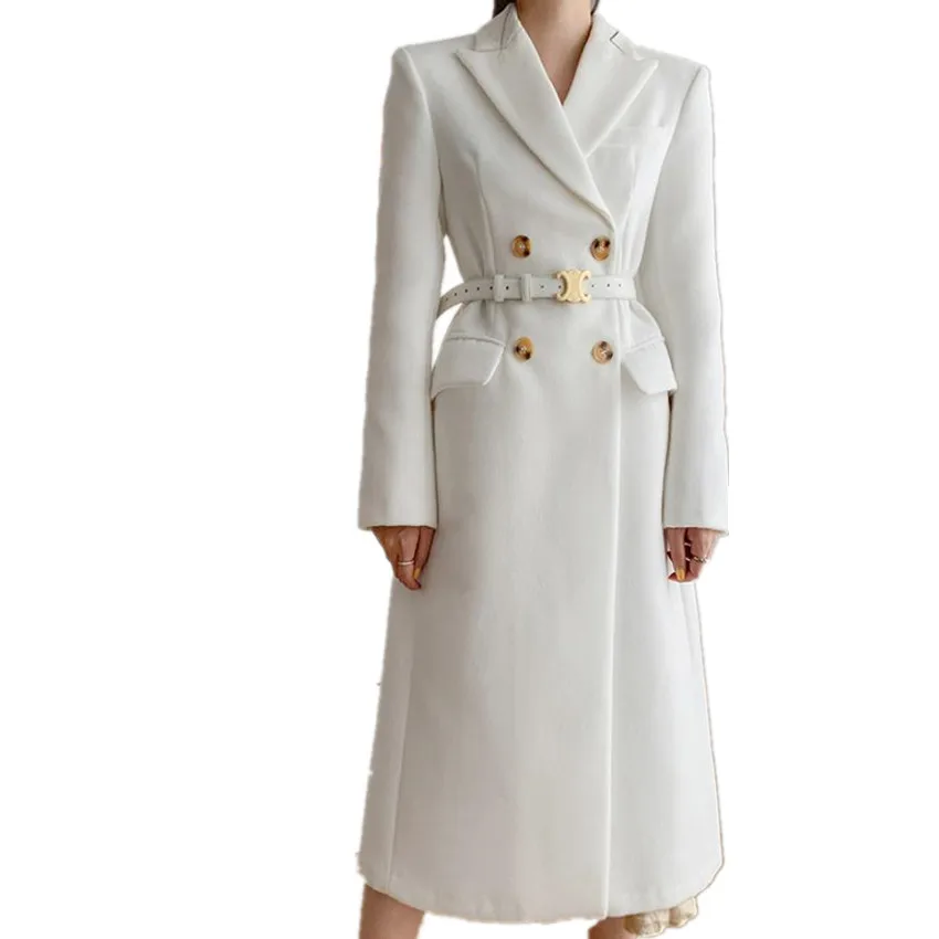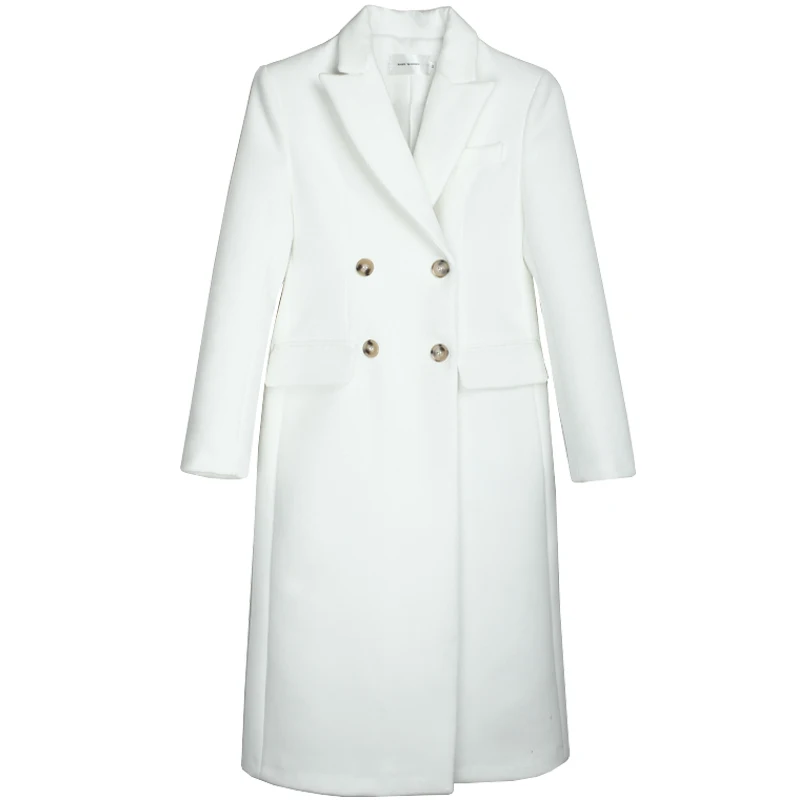 Женское зимнее шерстяное пальто, элегантное белое утепленное теплое кашемировое шерстяное пальто, верхняя одежда, модное длинное пальто
