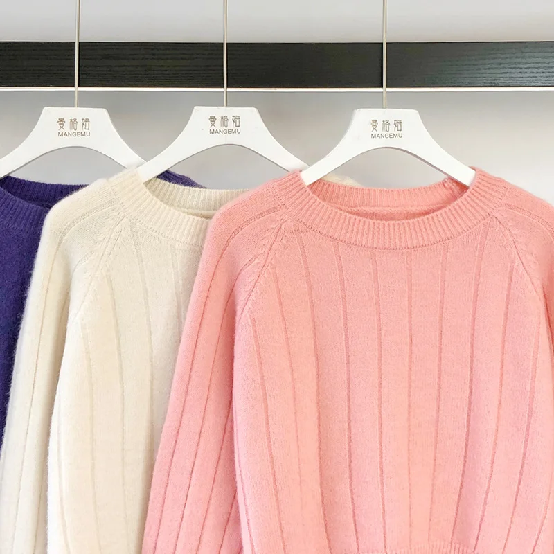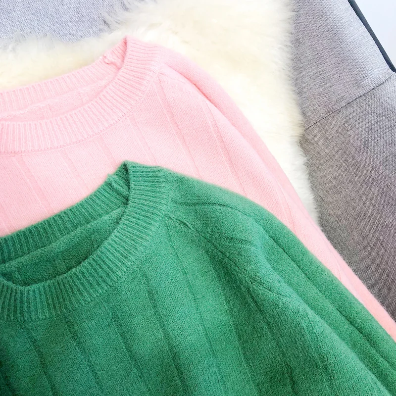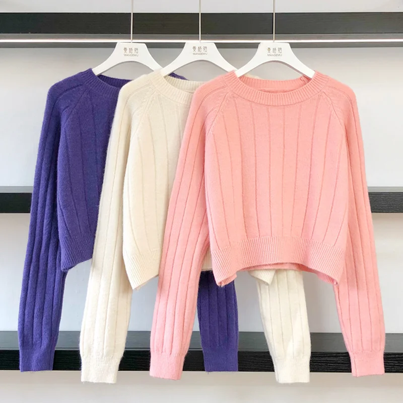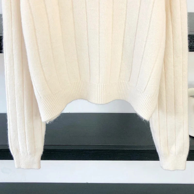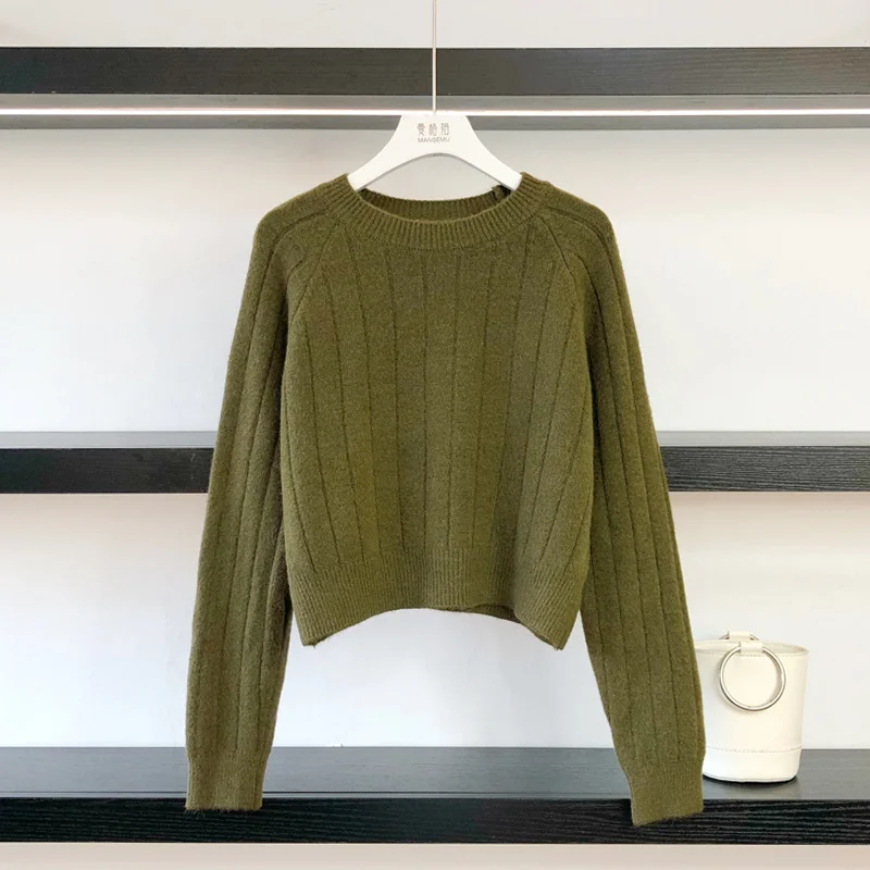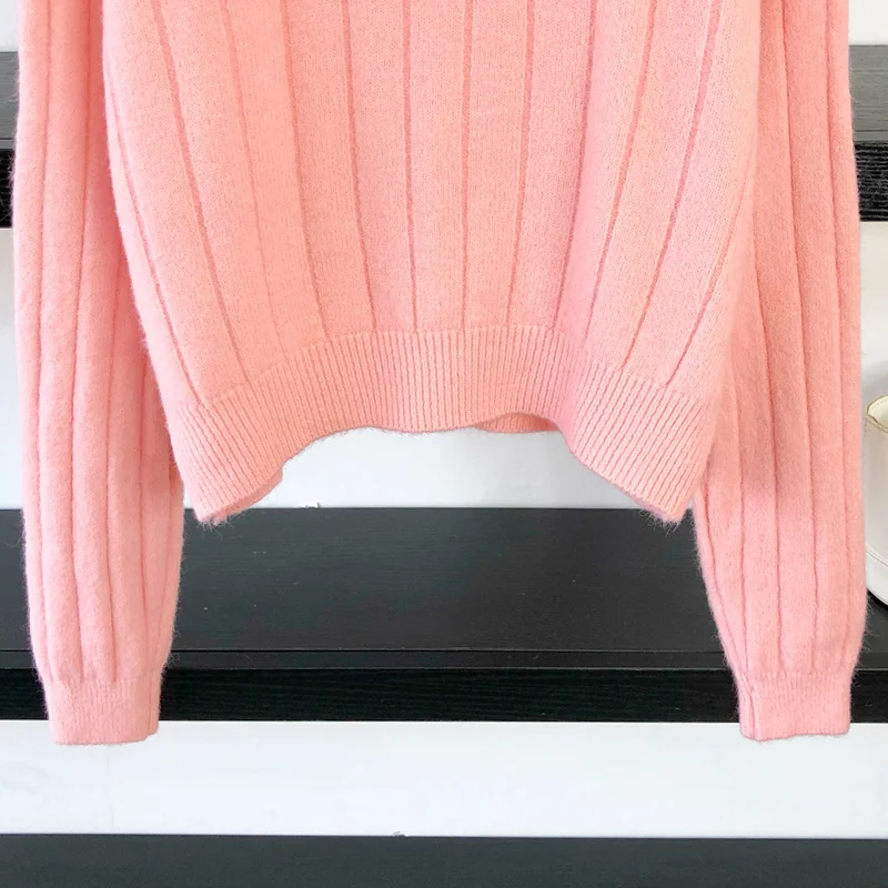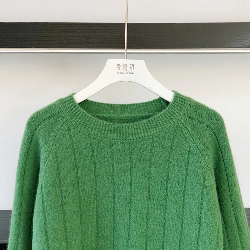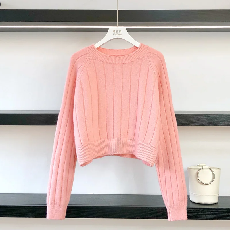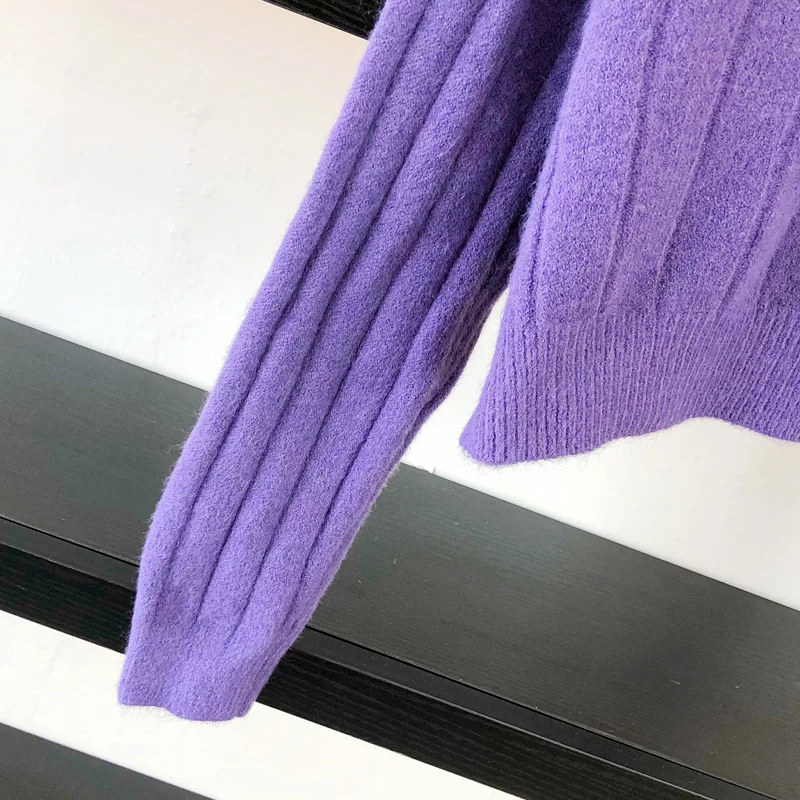 Пуловер женский вязаный PEONFLY, однотонный, Осень-зима, пуловер с длинным рукавом