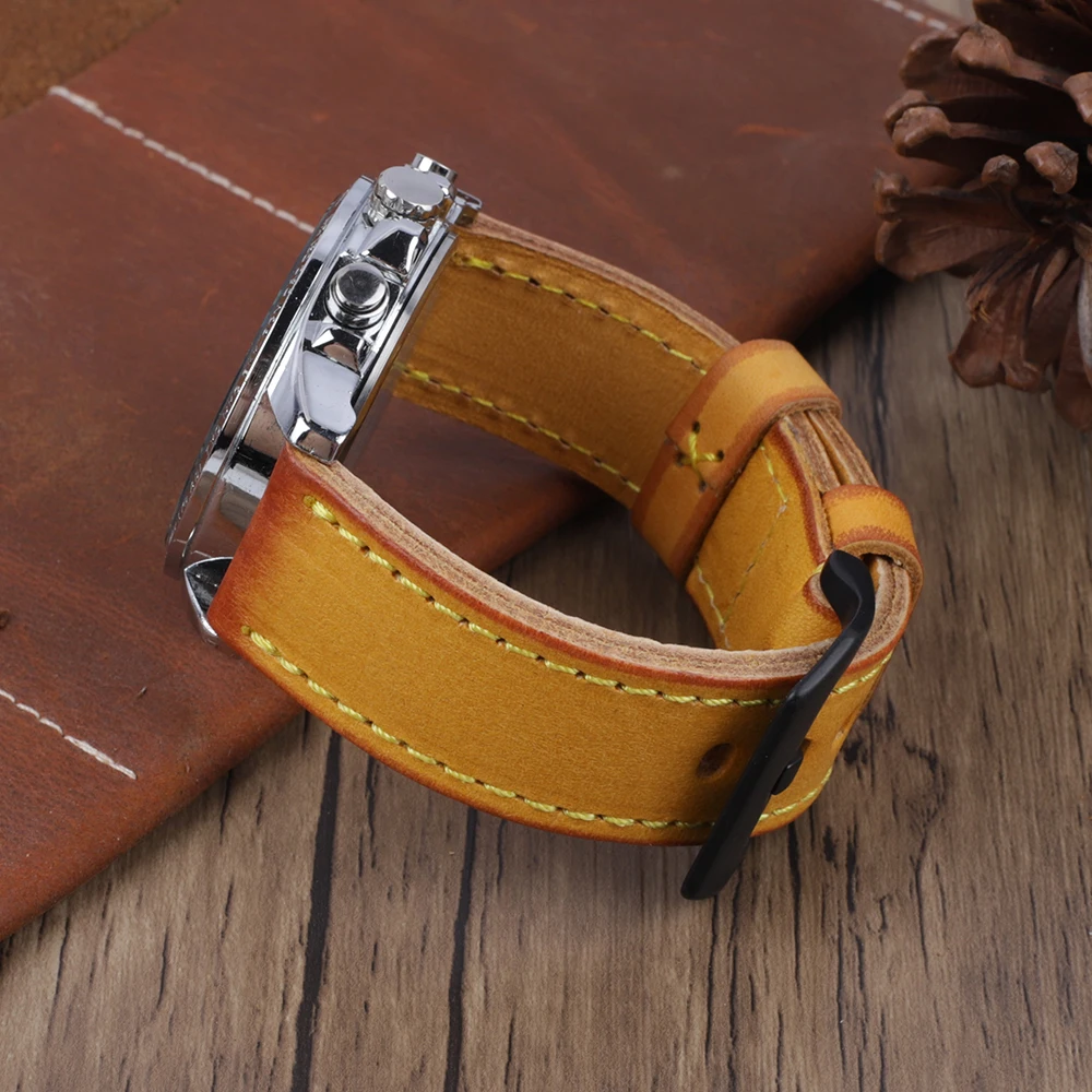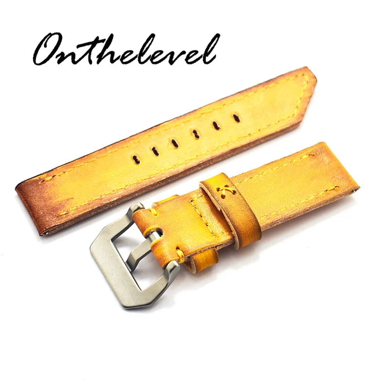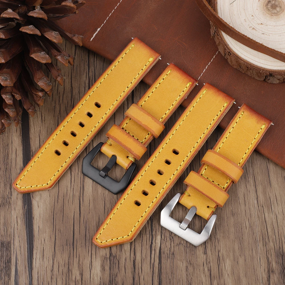 Ремешок мужской сменный для наручных часов, винтажный желтый кожаный браслет, ручная работа, 20 мм 22 мм 24 мм
