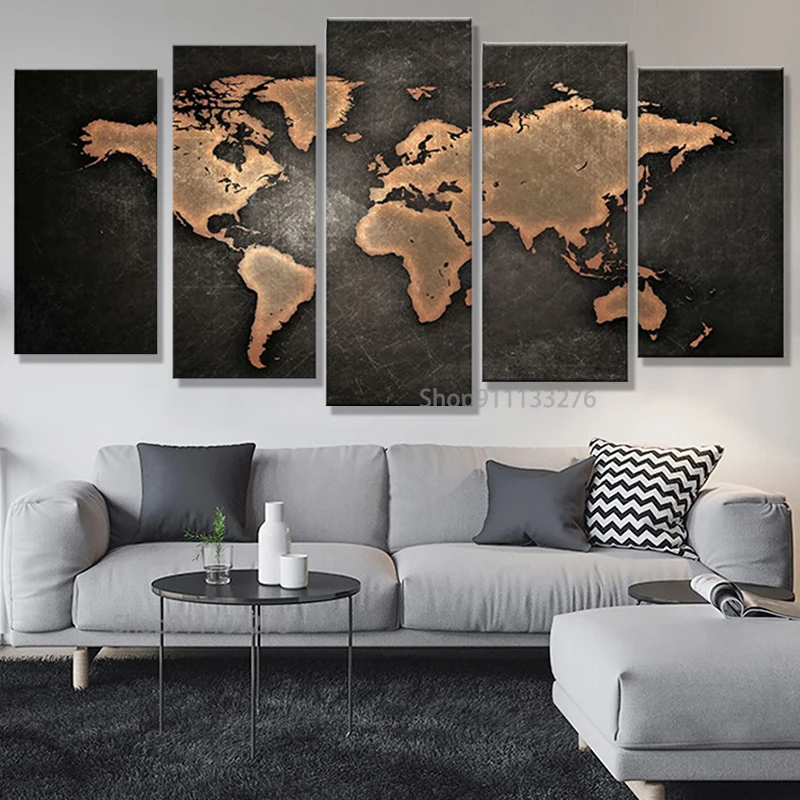 Картины HD абстрактный холст для гостиной настенный художественный плакат 5 шт. Ретро Карта мира украшение картины модульная рамка