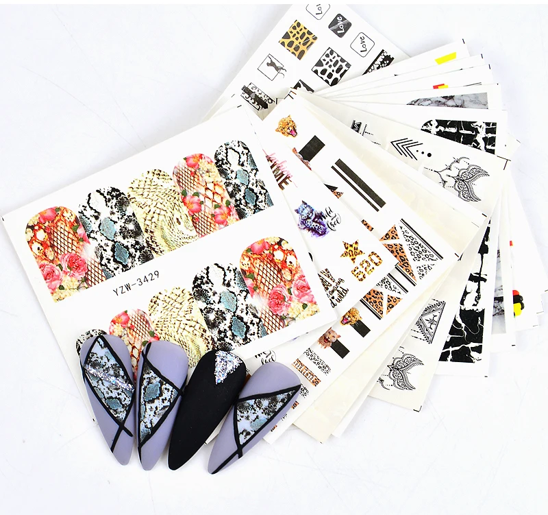 Леопард дизайнерские наклейки для ногтей Снежинка цветочный геометр...