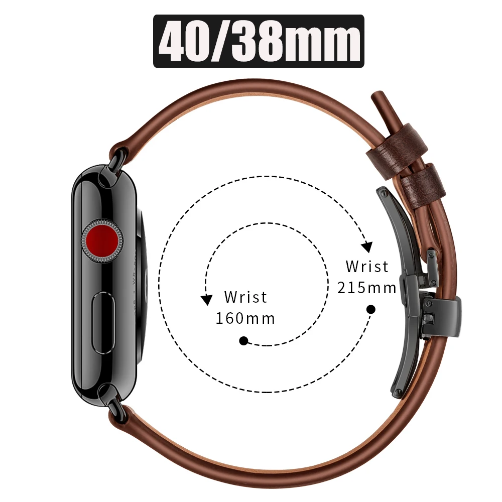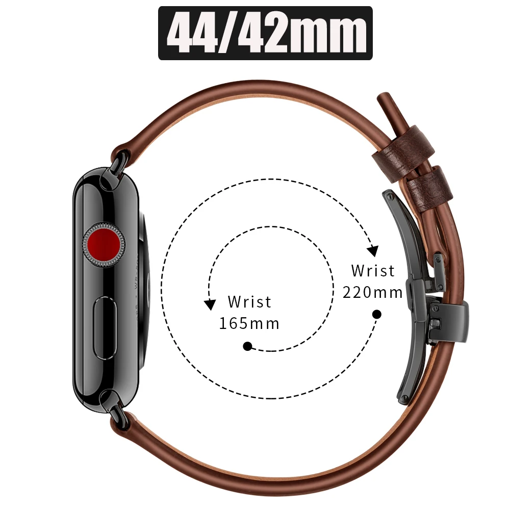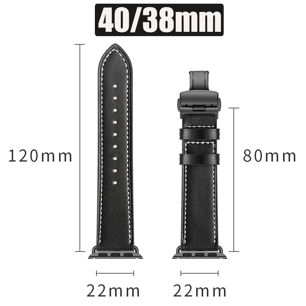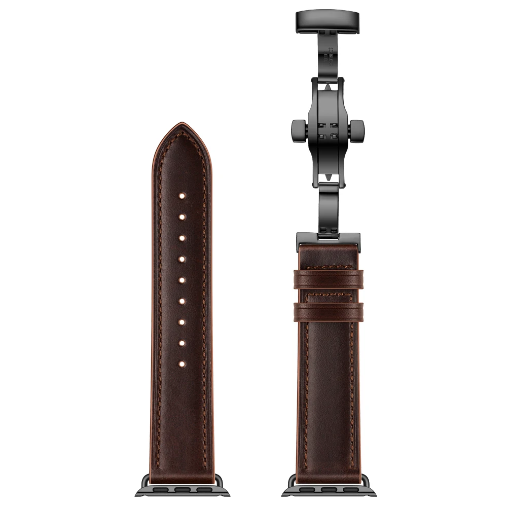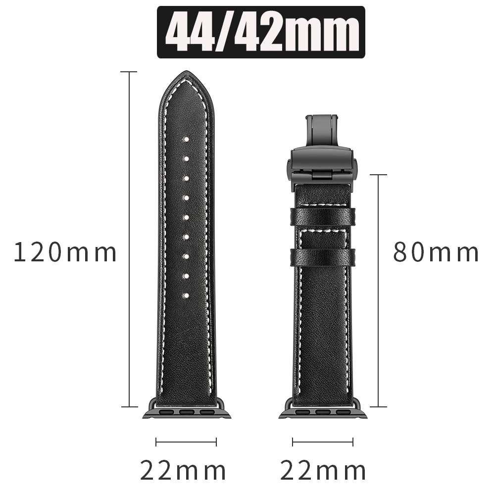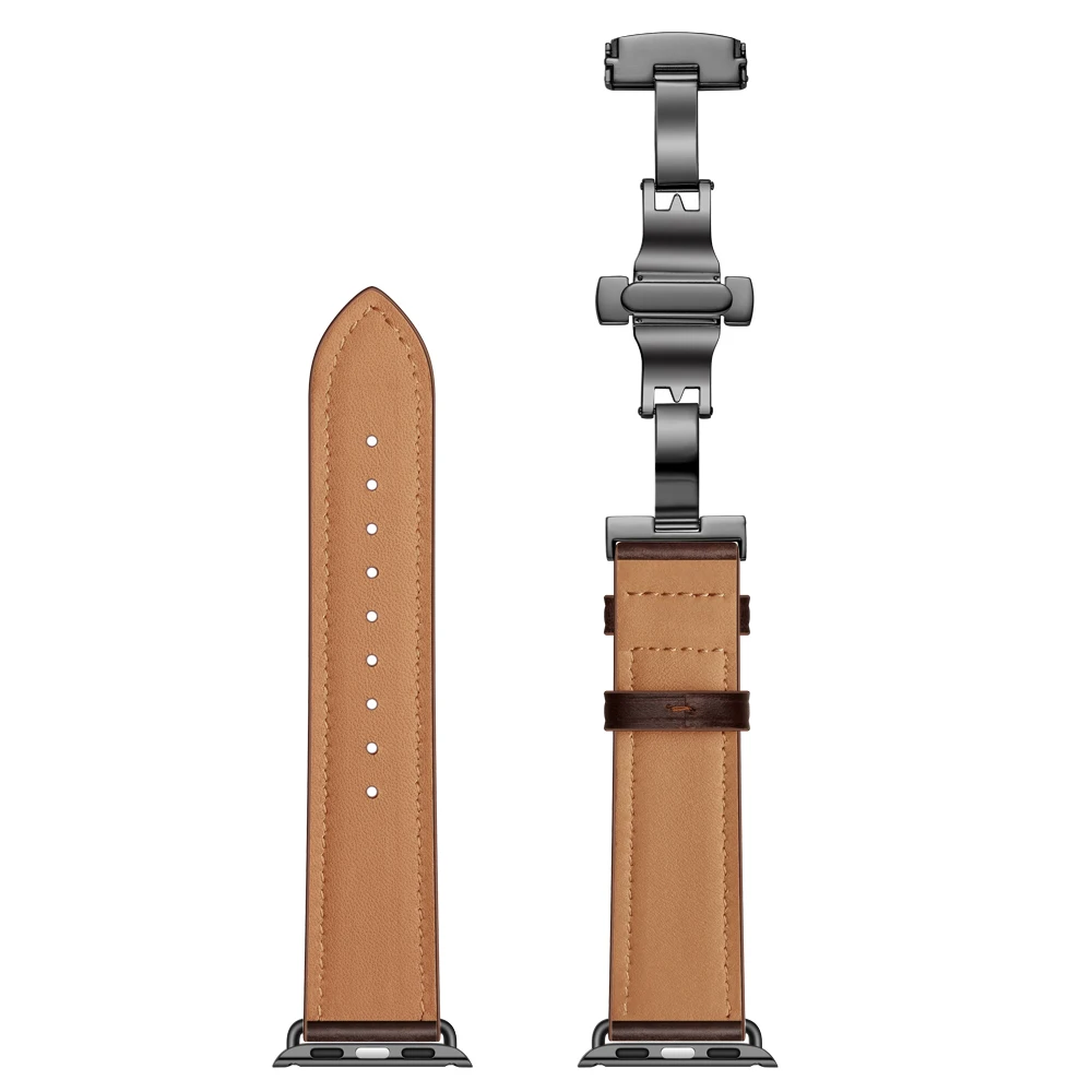 Ремешок для часов Apple Watch, кожаный, с застежкой-бабочкой, 44404238 мм
