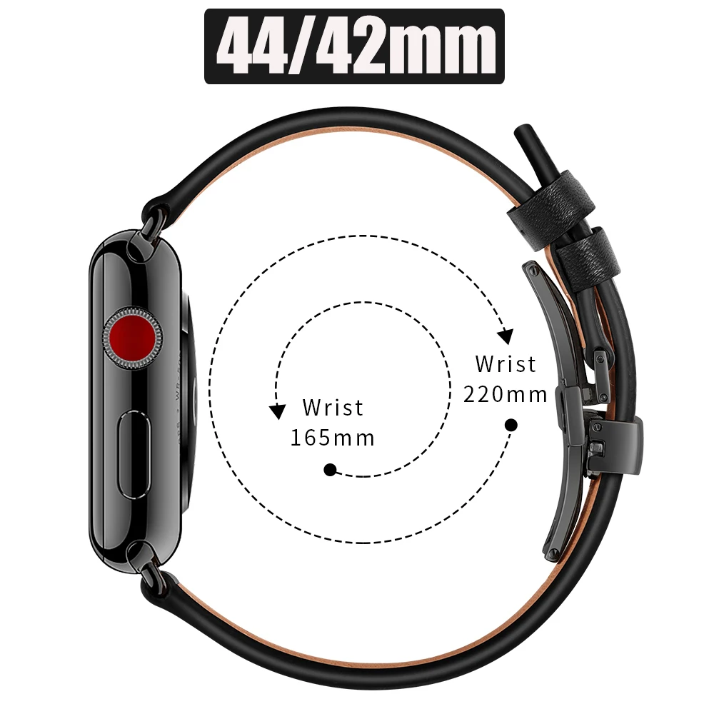 Ремешок из натуральной кожи хорошего качества для Apple Watch 6 5 4 3 2 1 SE, ремешок с застежкой-бабочкой для iWatch, ремешок 44 мм 40 мм 42 мм 38 мм