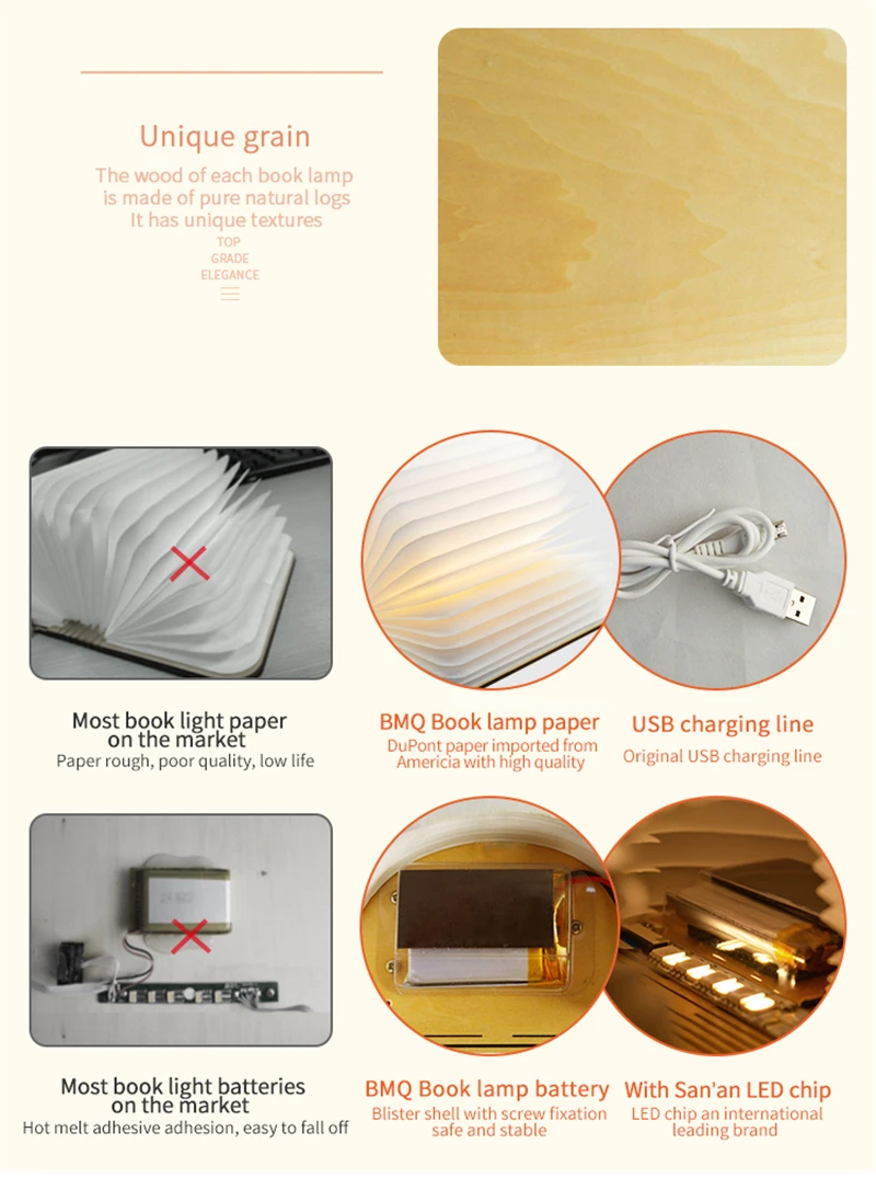 Деревянный ночник для книг, Складная Настольная лампа с USB-зарядко...