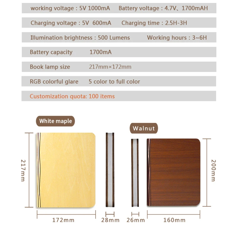3D деревянная книжная светильник Портативный USB Перезаряжаемые Маг...