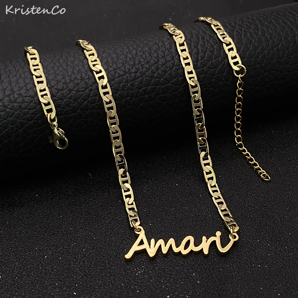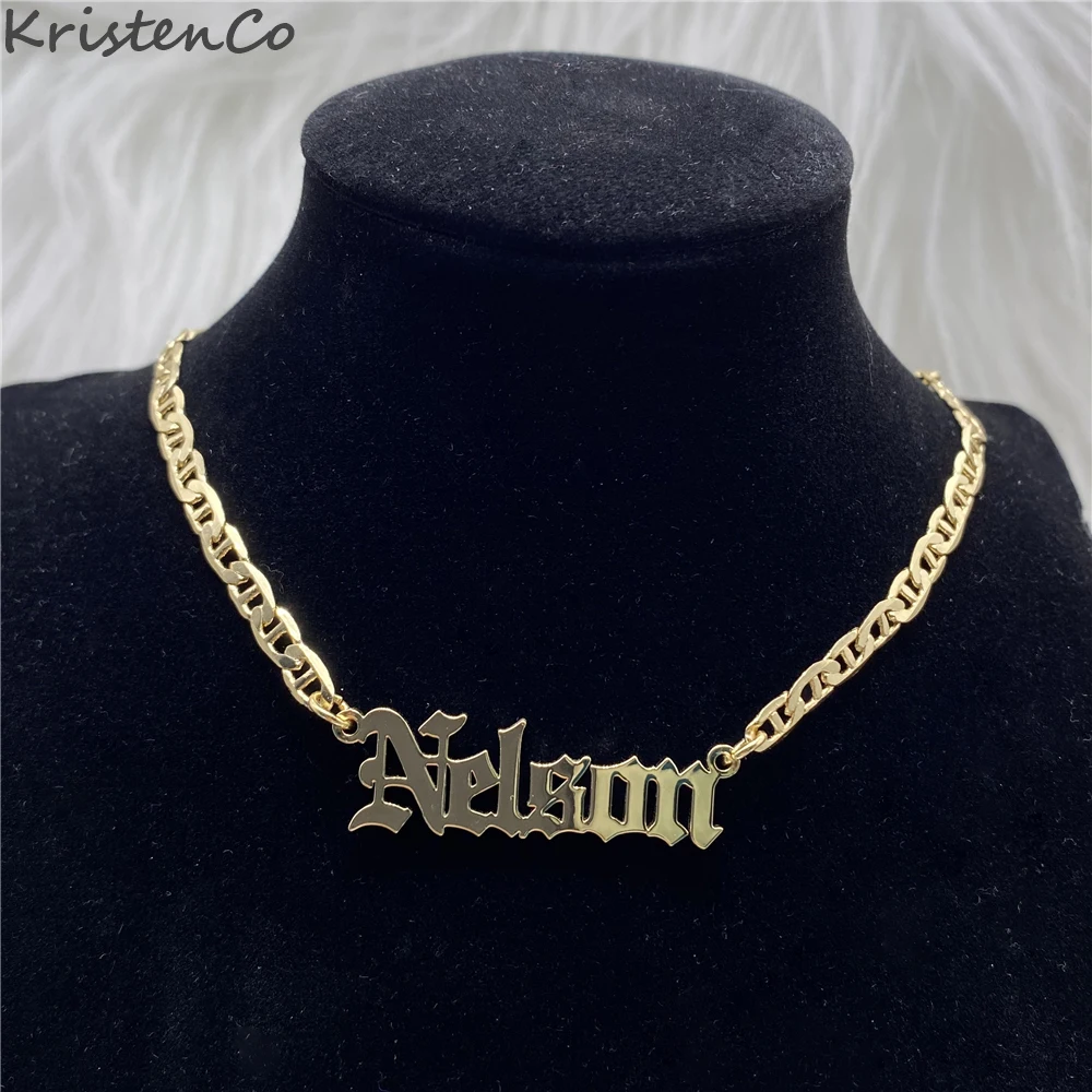 Индивидуальное ожерелье KristenCo с именем на заказ, подвеска золотого цвета, плоская цепь, стандартные ожерелья для женщинмужчин, подарки
