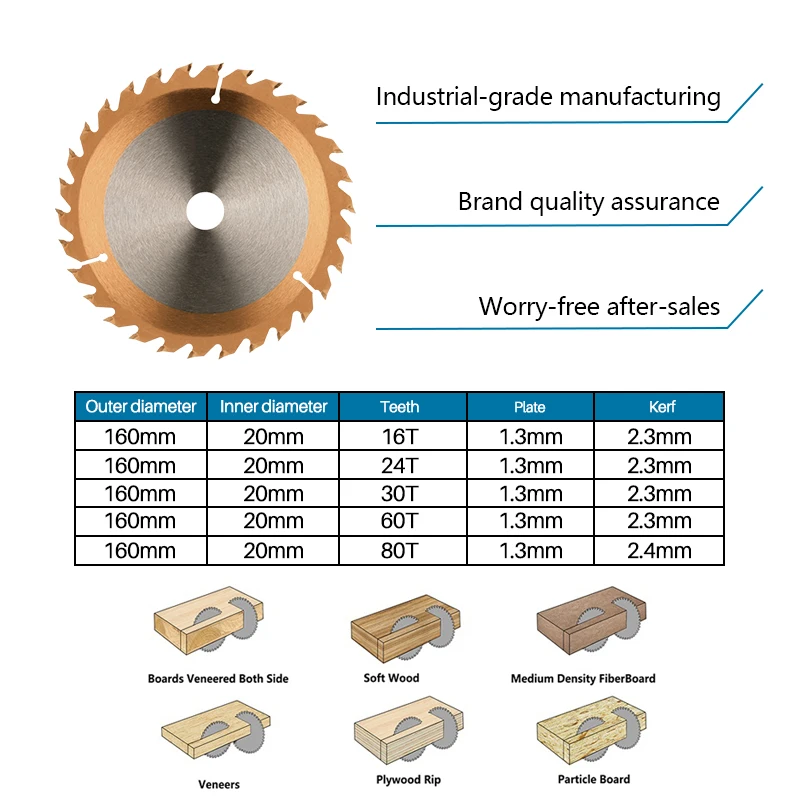 Пильный диск XCAN по дереву, карбидный наконечник, пильный диск 160 мм, покрытый TiCN, режущий диск по дереву TCT