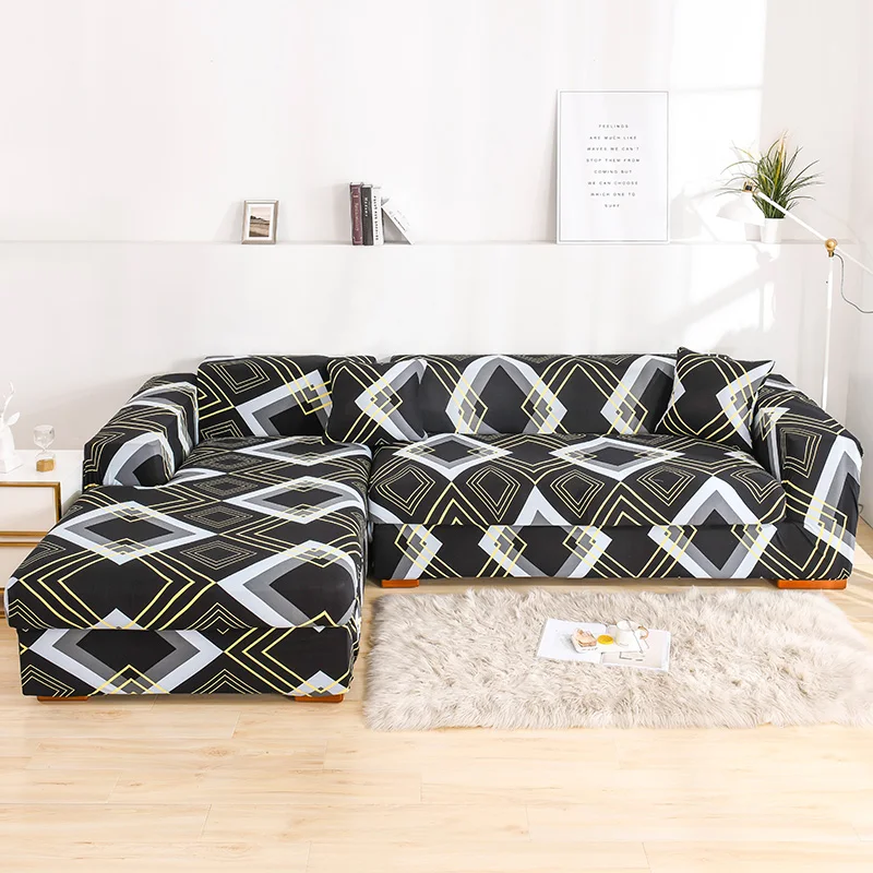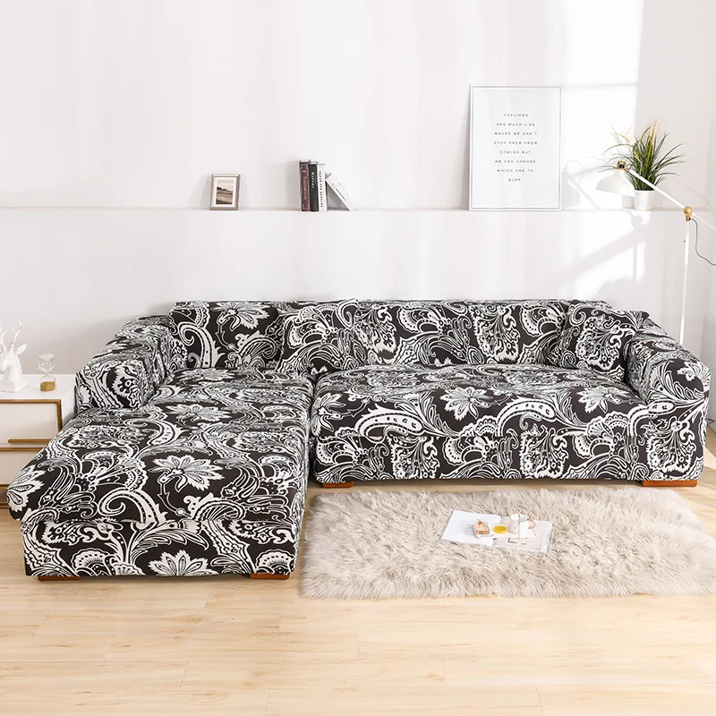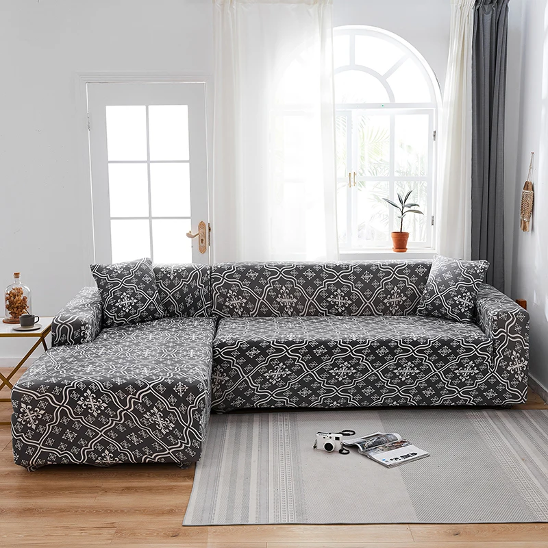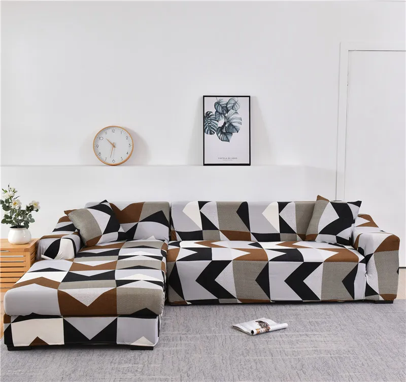 Угловое покрывало для дивана, эластичное покрывало L-образной формы с принтом для гостиной на 1234 места, секционное покрывало для дивана