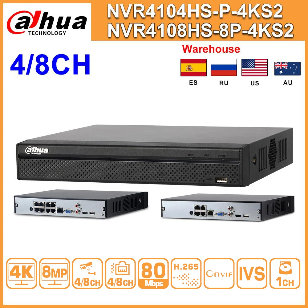 Оригинал Dahua NVR NVR4104HS-P-4KS2 NVR4108HS-8P-4KS2 48 CH NVR POE 4K Сетевой Видео Регистраторы с капельницы HD 8MP для IP Камера