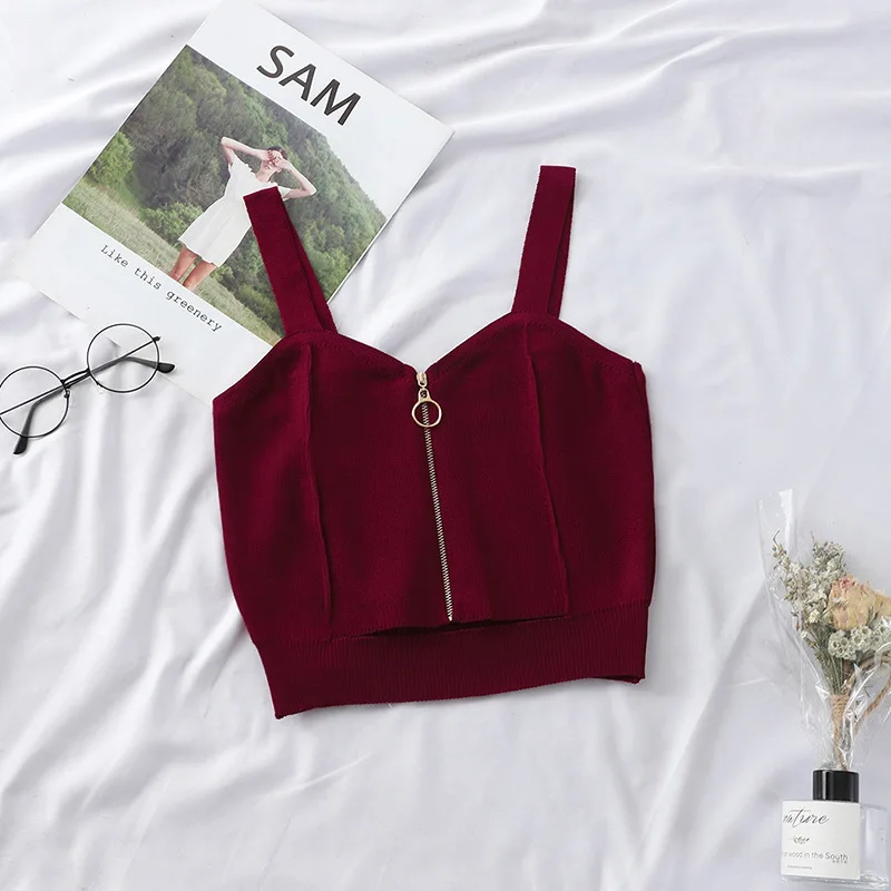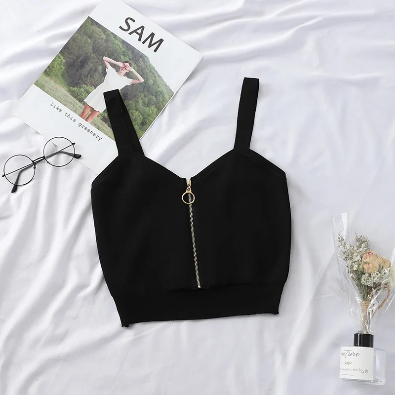 Кроп-Топ женский на молнии, эластичный трикотажный топ с дырками, однотонный пикантные Короткие топы без рукавов