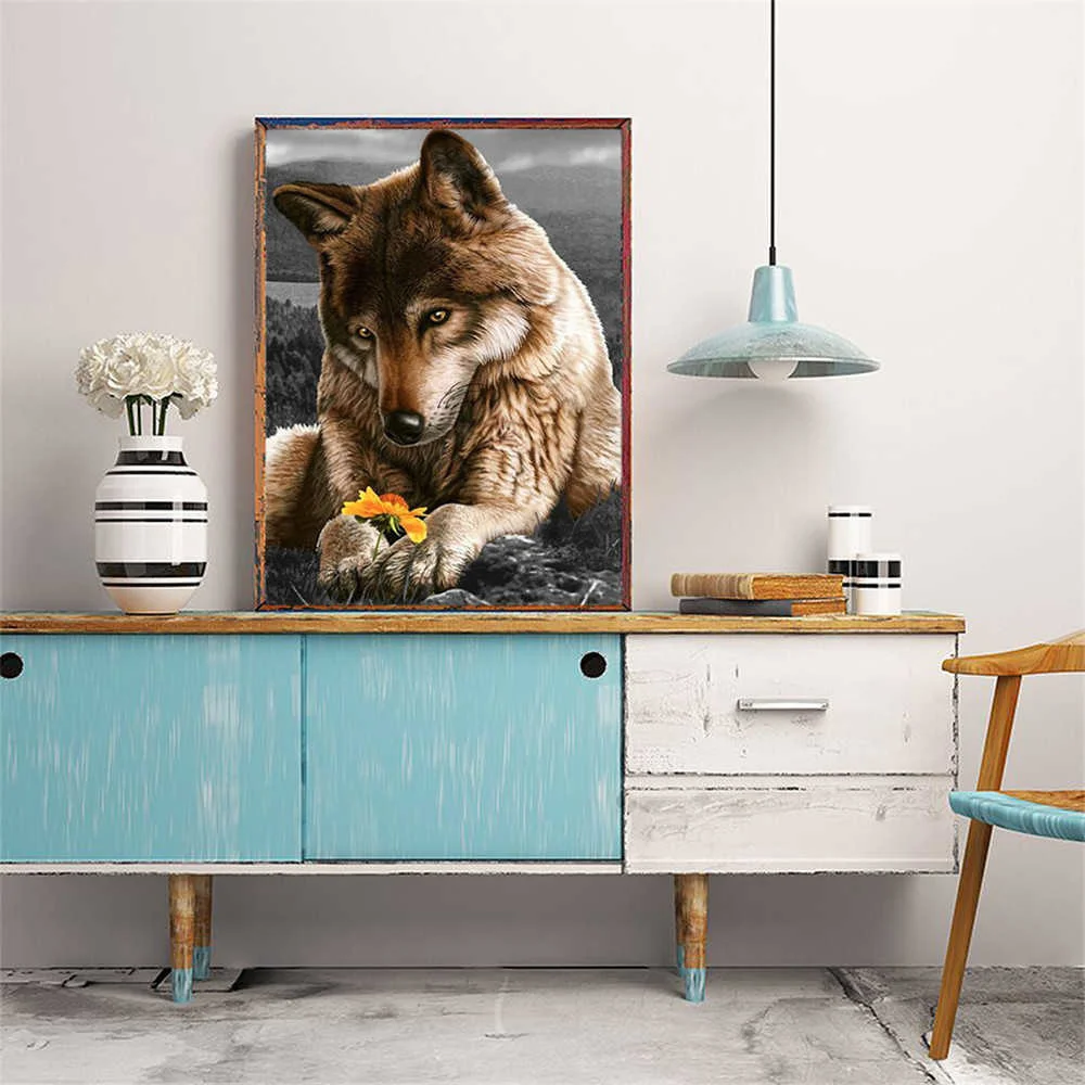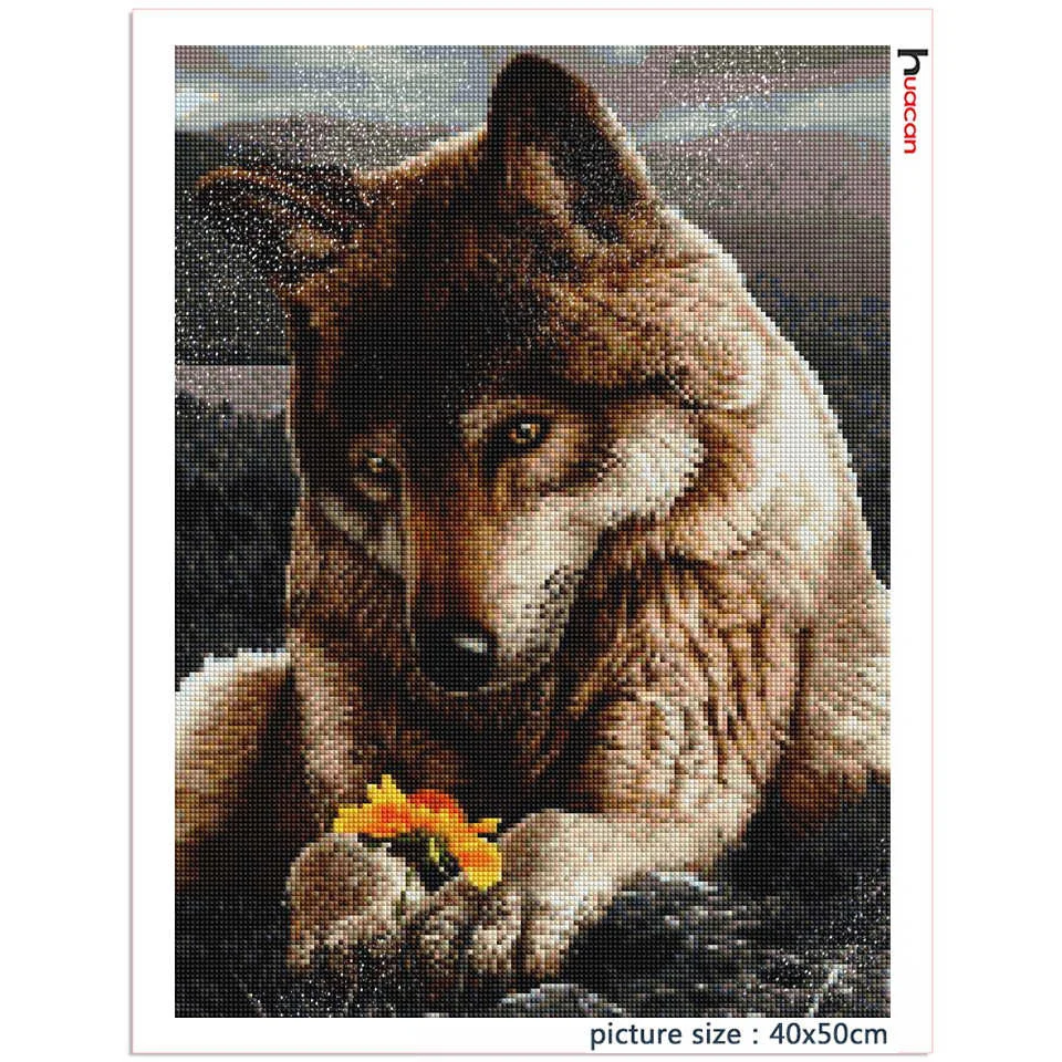 Алмазная вышивка Huacan, полноразмернаякруглая живопись с волком, мозаика с цветами, украшение для дома