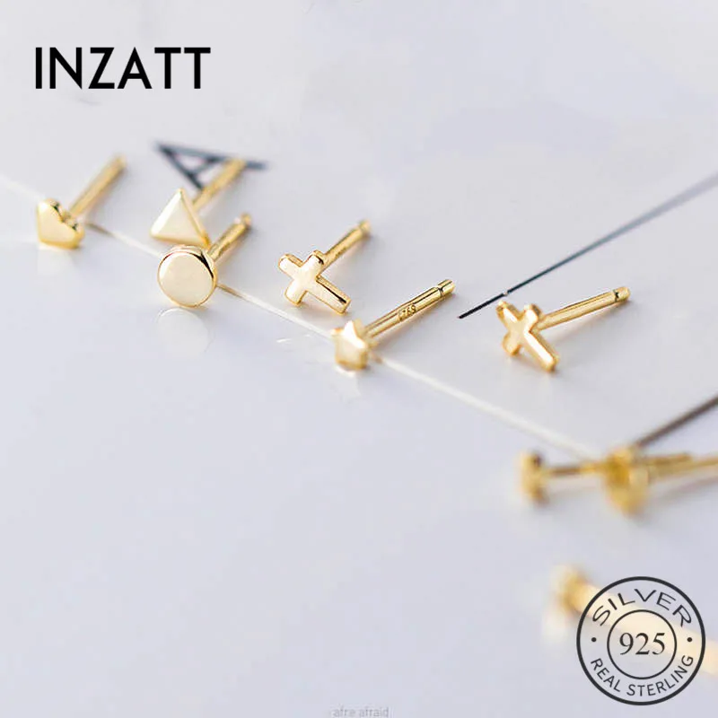 INZATT реальные 925 стерлингового серебра с геометрическим принтом крест круглые серьги-гвоздики со звёздочками для Модные женские вечерние ювелирные украшения в стиле панк аксессуары